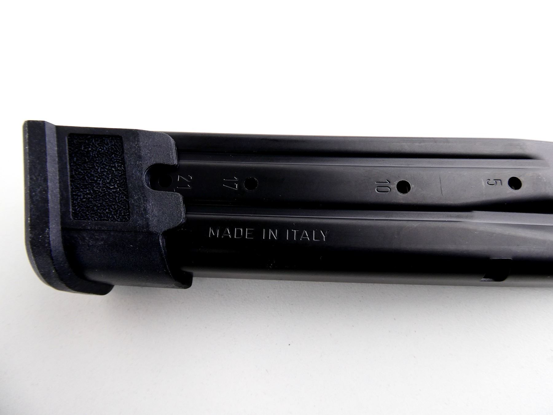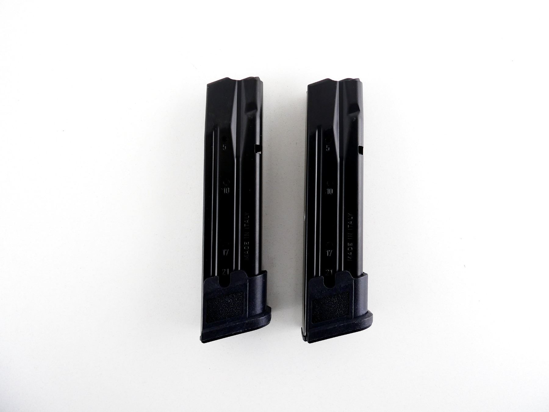 LOT INCLUDES; (2) 9MM, 10/21 ROUND PINNED MAGS, BLUED STEEL, WITH EXTENDED BASEPLATES ATTACHED, MARKED: "SIG SAUER", "9MM", "MADE IN ITALY", ETC. SEE PHOTOS. PAL REQUIRED.