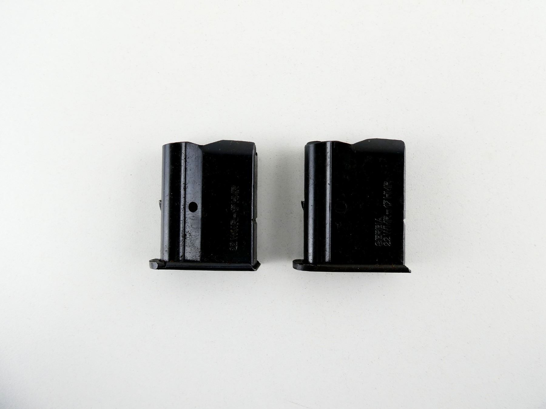 LOT INCLUDES; (2) .22 WMR / .17 HMR MAGS, 5 RNDS, BLUED STEEL CONSTRUCTION, ONE MARKED: "SERBIA", ".22 WMR, .17 HMR" / ONE MARKED: ".22 WMR, .17 HMR", ETC. SEE PHOTOS. PAL REQUIRED.