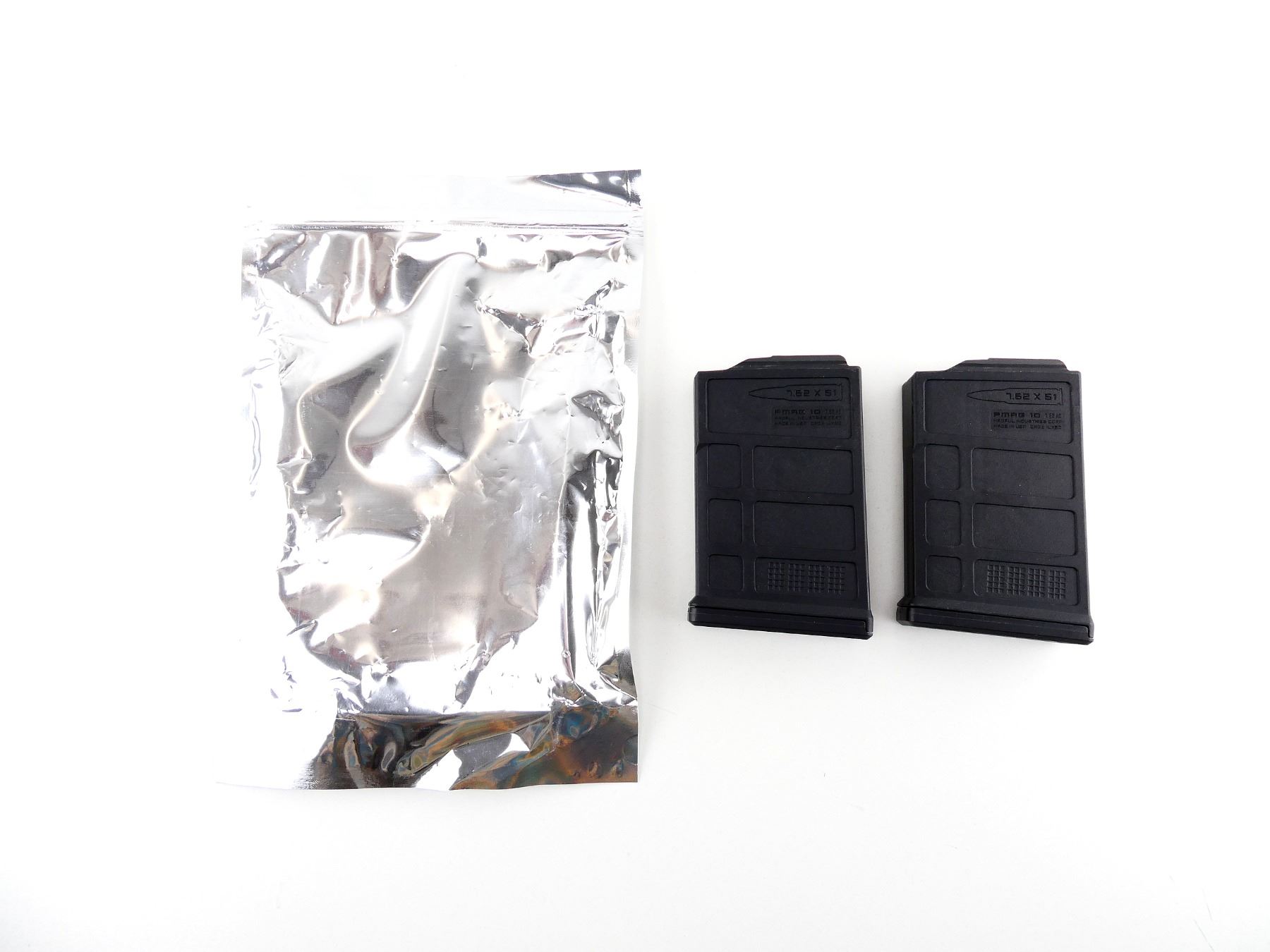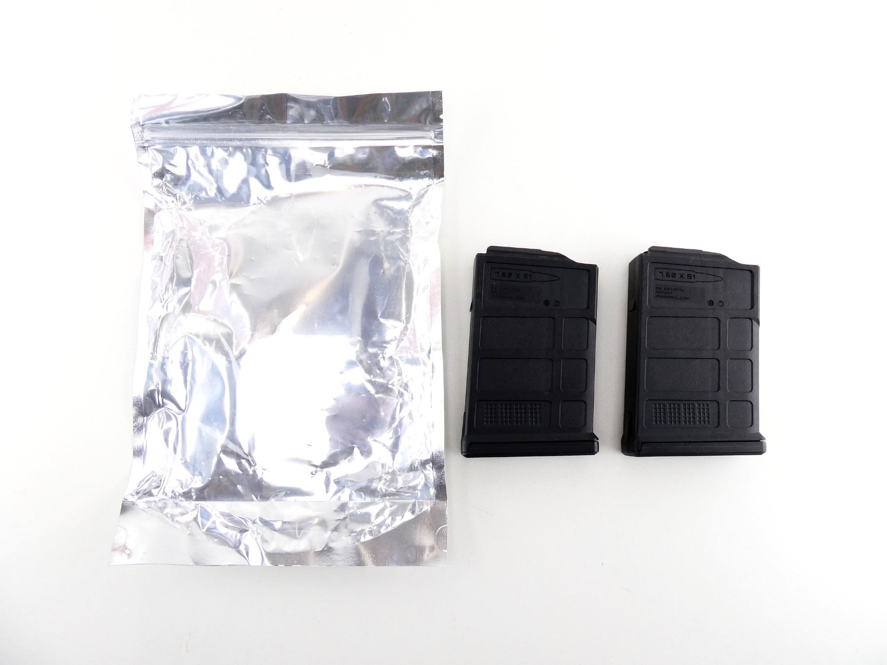 LOT INCLUDES; (2) 7.62 NATO / .308 WIN, 5/30 ROUND PINNED MAGS, BLACK POLYMER CONSTRUCTION, MARKED: "PMAG 10", "7.62X51", "7.62 AC", ETC. SEE PHOTOS. PAL REQUIRED.