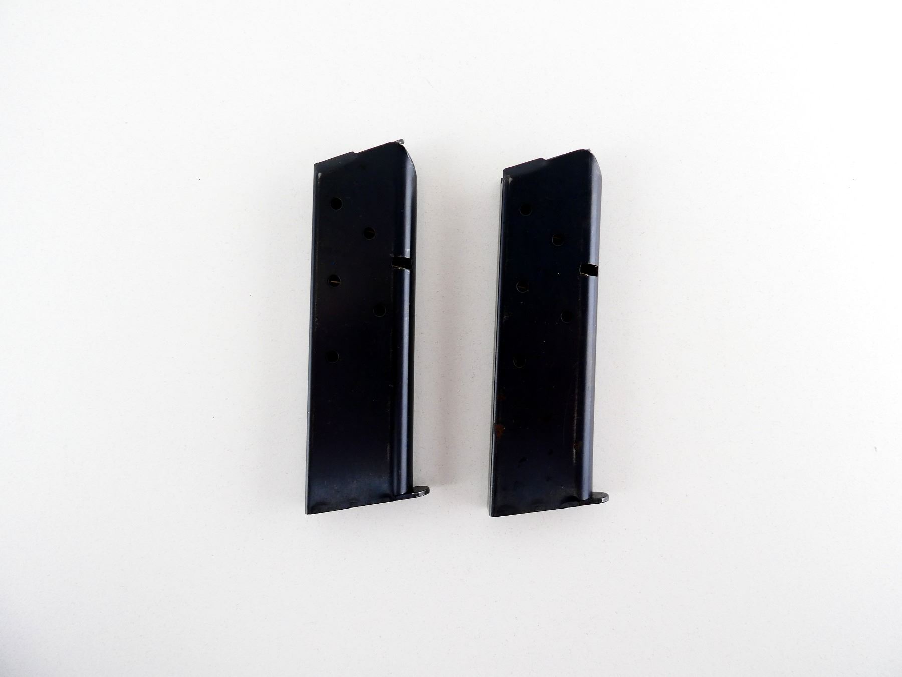 LOT INCLUDES; (2) 1911 .45 ACP MAGS, 7 RNDS, BLUED STEEL CONSTRUCTION, BASES MARKED: "COLT, 45 AUTO". SEE PHOTOS. PAL REQUIRED.