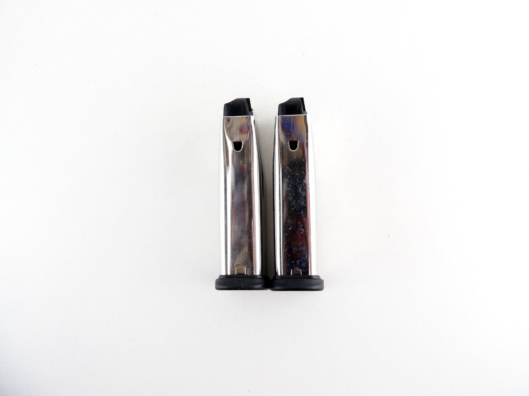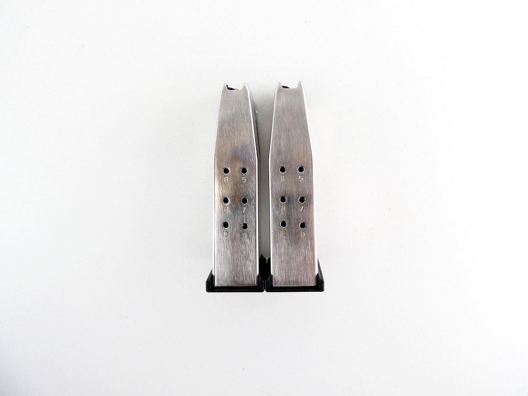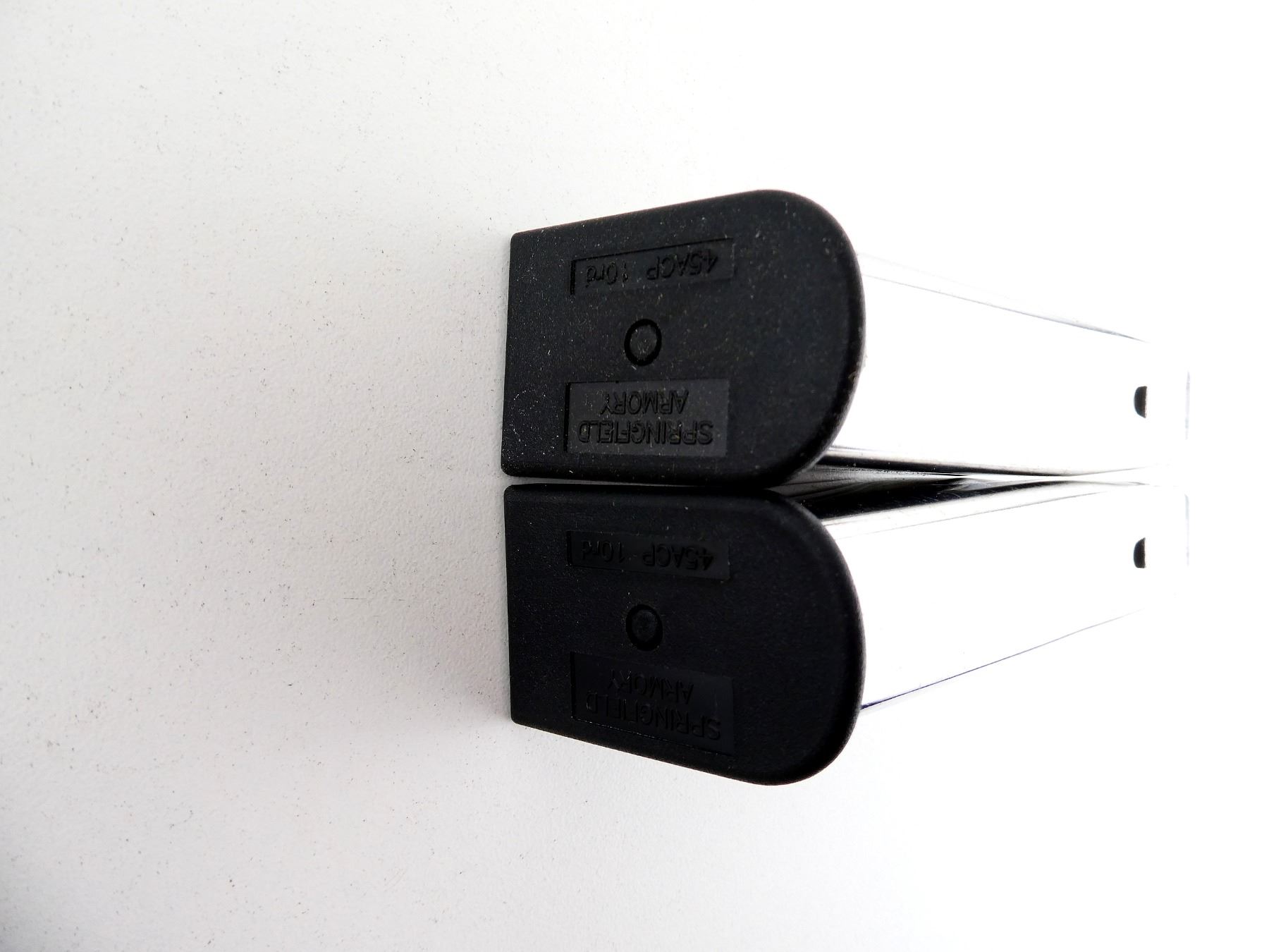 LOT INCLUDES; (2) .45 ACP MAGS, 10 RNDS, COMPACT, NICKLE FINISH CONSTRUCTION, BASE MARKED: "SPRINGFIELD ARMORY", "45ACP - 10RD", ETC., APPEARS NEW OLD STOCK IN ORIGINAL PACKAGING. SEE PHOTOS. PAL REQUIRED.