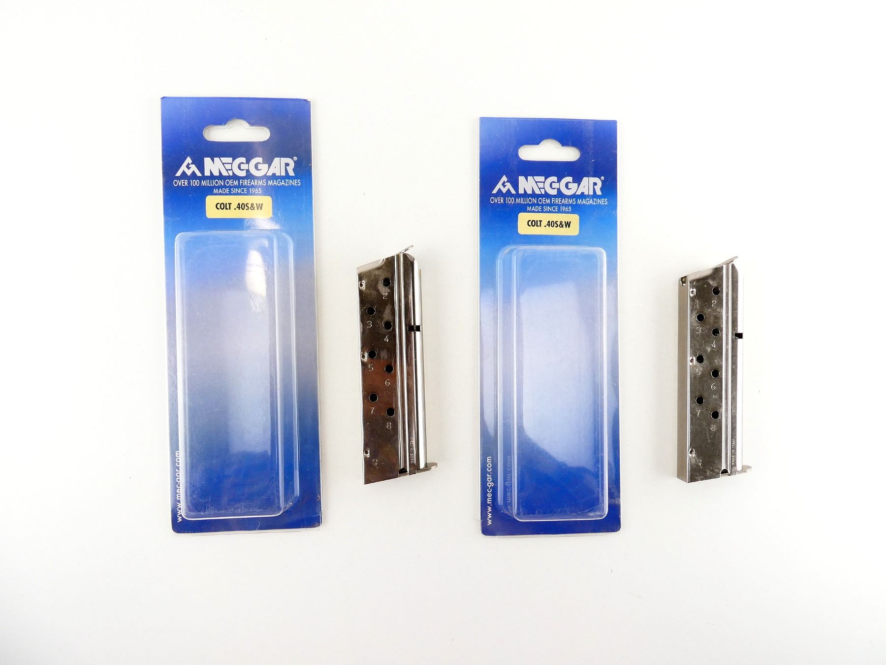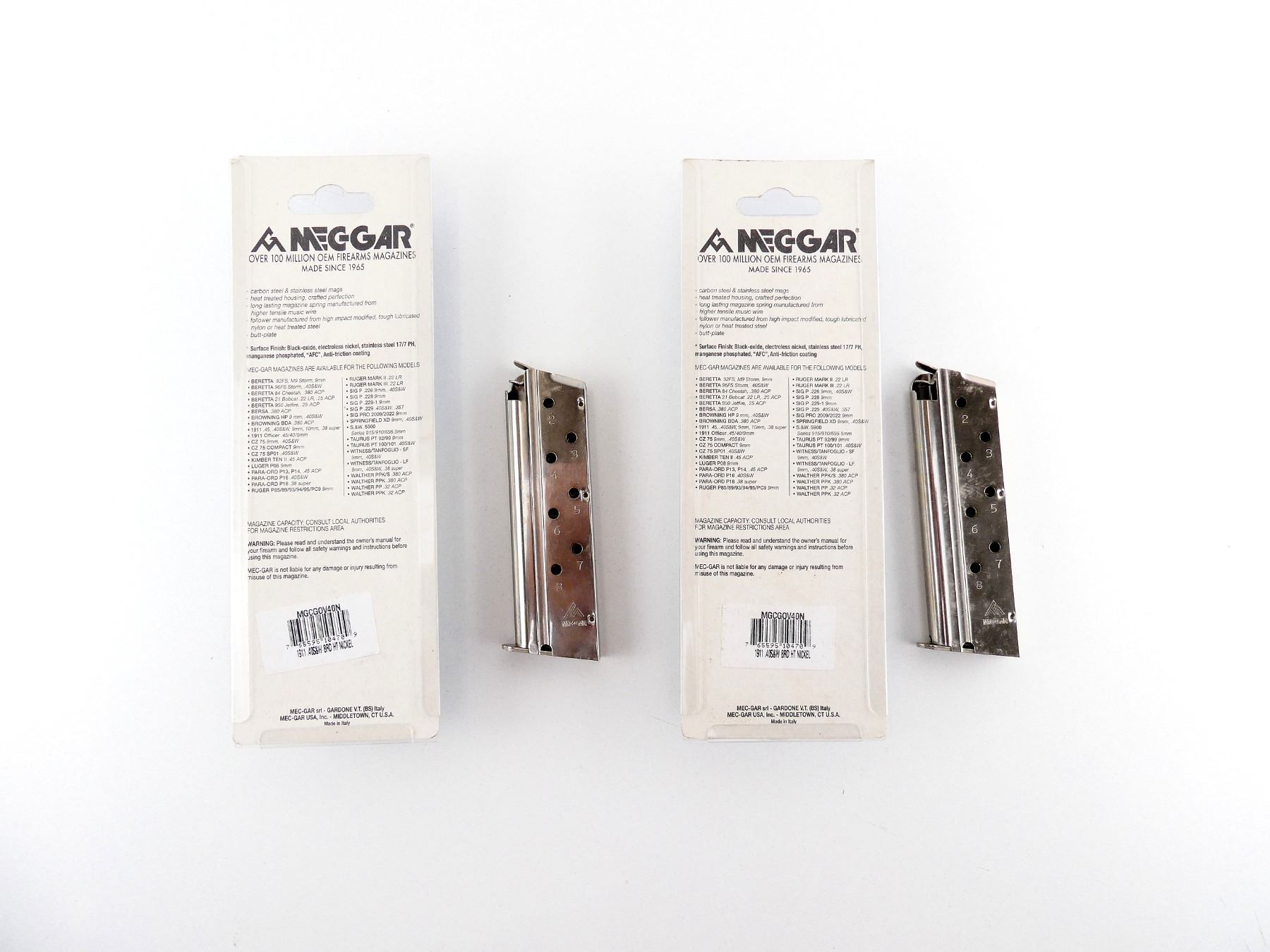 LOT INCLUDES; (2) .40 S&W MAGS, 8 RNDS, NICKEL FINISH CONSTRUCTION, MARKED: "MEC-GAR", ETC., APPEARS NEW OLD STOCK IN ORIGINAL PACKAGING. SEE PHOTOS. PAL REQUIRED.