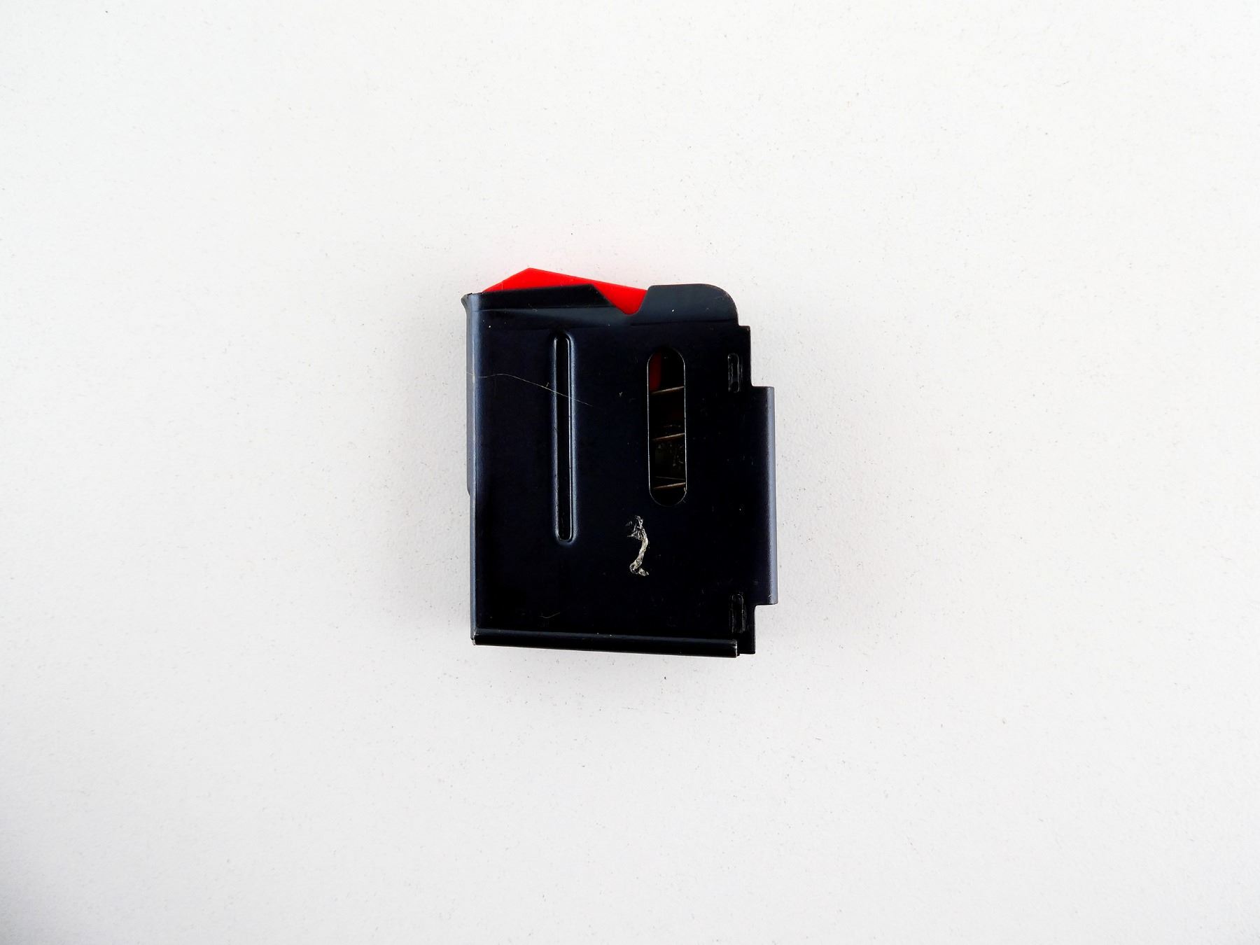(1) .17 HMR / .22 WIN MAG MAGAZINE, 5 RNDS, BLUED STEEL CONSTRUCTION WITH RED POLYMER FOLLOWER, UNMARKED. SEE PHOTOS. PAL REQUIRED.