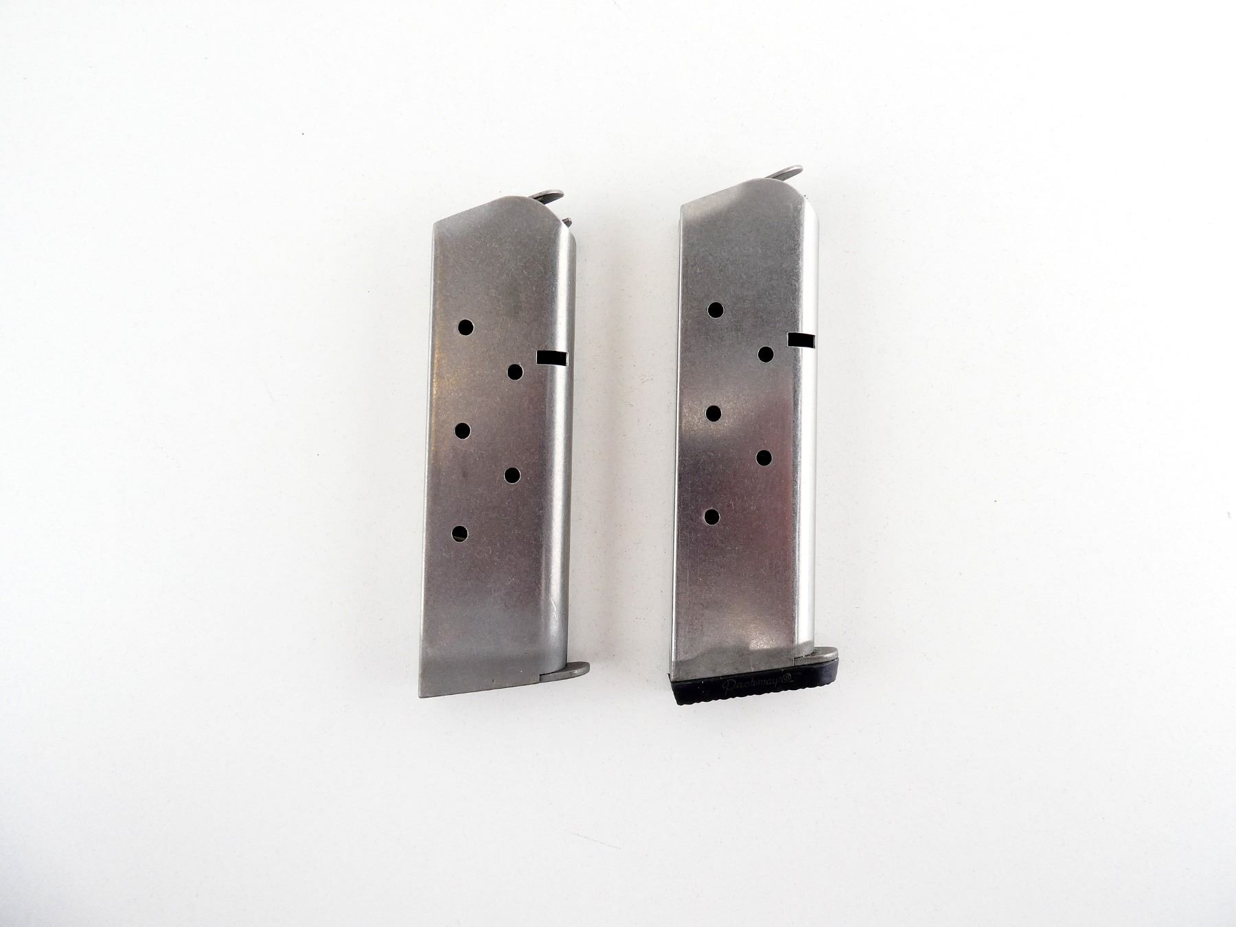 LOT INCLUDES; (2) .45 ACP MAGS, 7 RNDS, STEEL CONSTRUCTION, ONE BASE MARKED: "COLT, 45 AUTO" / OTHER UNMARKED. SEE PHOTOS. PAL REQUIRED.