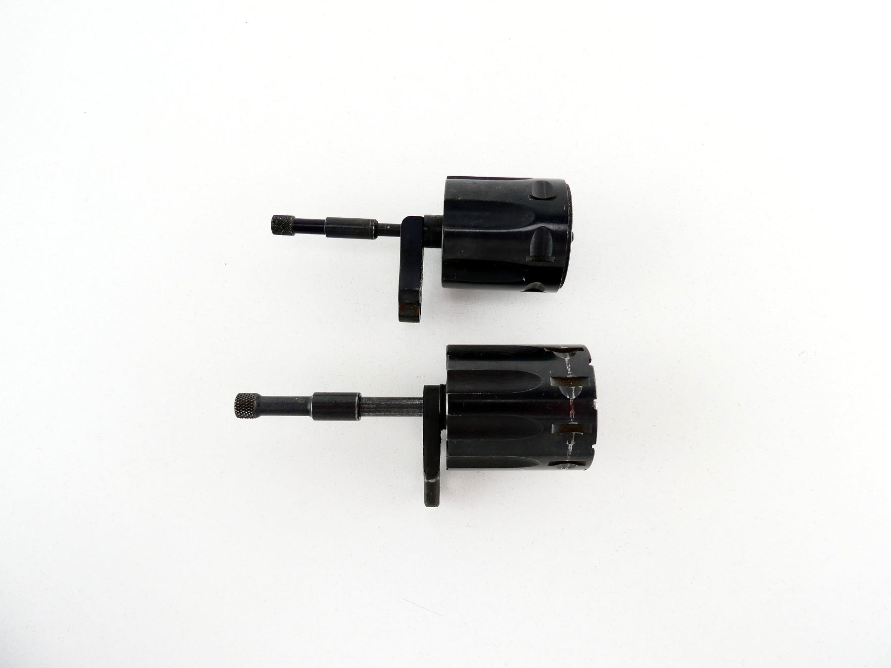 LOT INCLUDES; (2) .22 LR, ONE 6 SHOTS / ONE 9 SHOTS, BLUED STEEL CONSTRUCTION, UNMARKED. MAY REQUIRE FITTING. SEE PHOTOS.