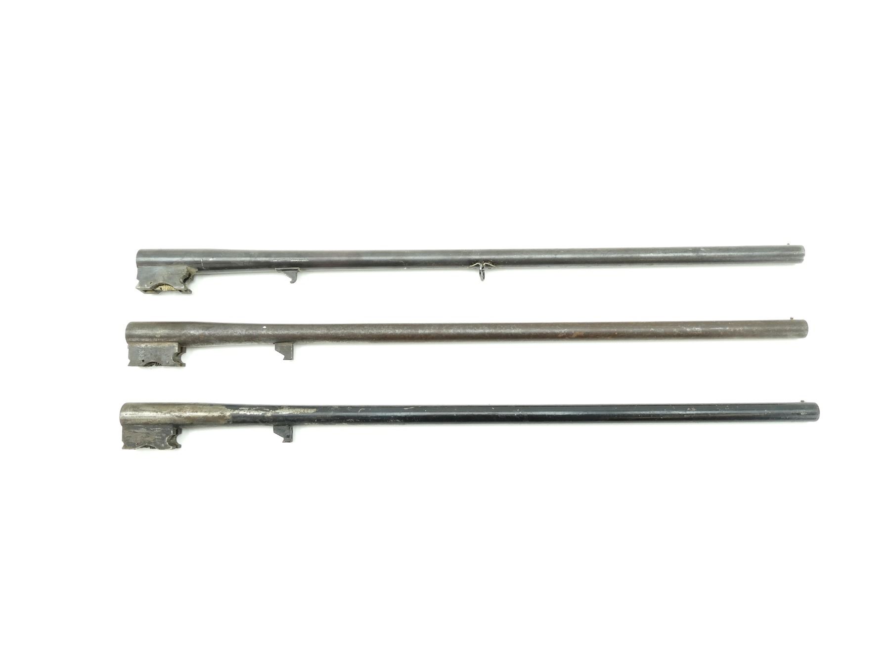 LOT INCLUDES; (3) 12 G. X 2 3/4" BARREL, BORES ARE VERY GOOD, WITH FIXED FULL CHOKES, BLUED / BLACK PAINTED STEEL CONSTRUCTION, VARIOUS MARKINGS, WITH BRASS FRONT BEADS & EJECTORS, OVERALL LENGTH APPROX. 30". MAY REQUIRE FITTING. SEE PHOTOS. PAL REQUIRED.