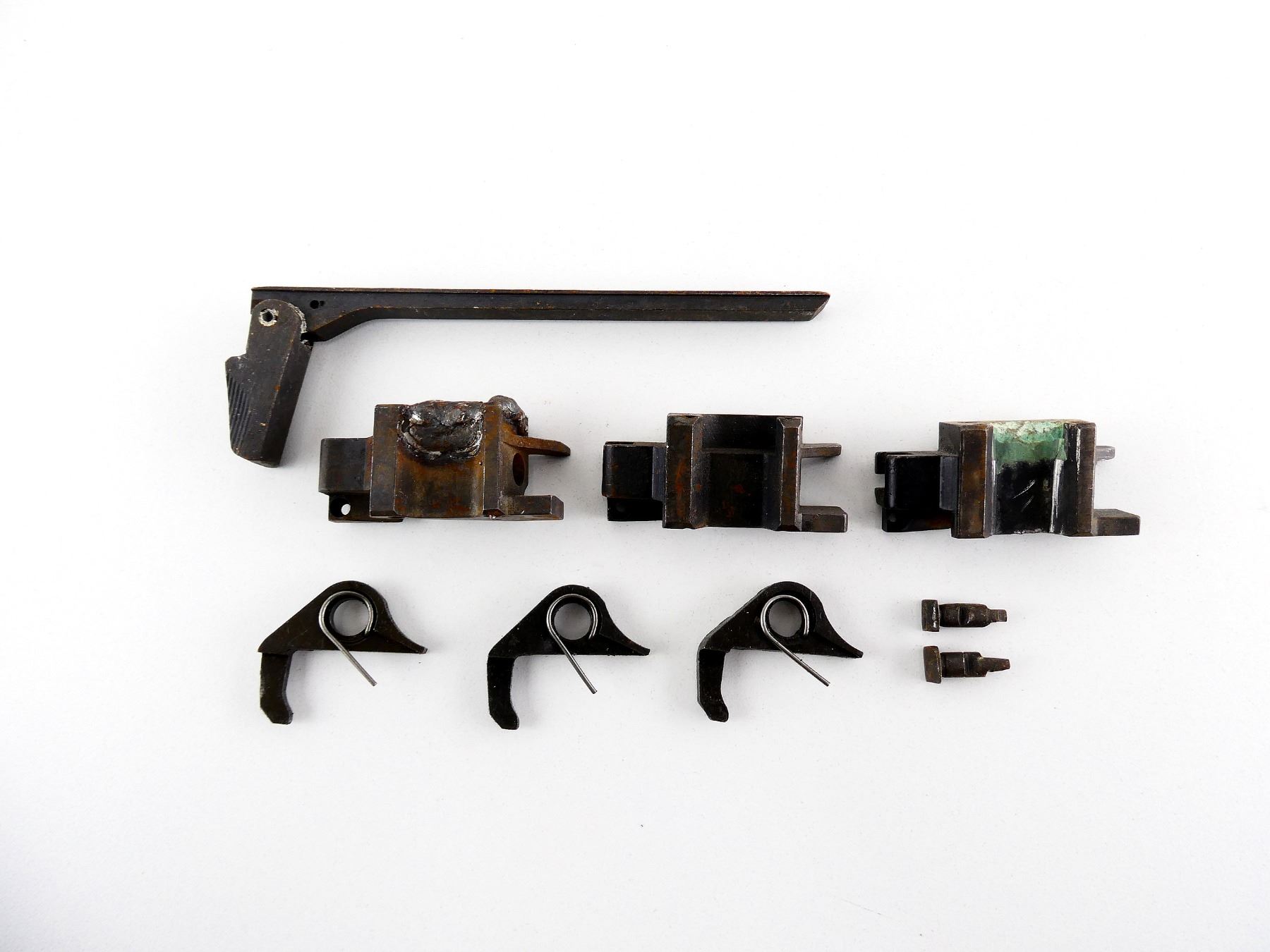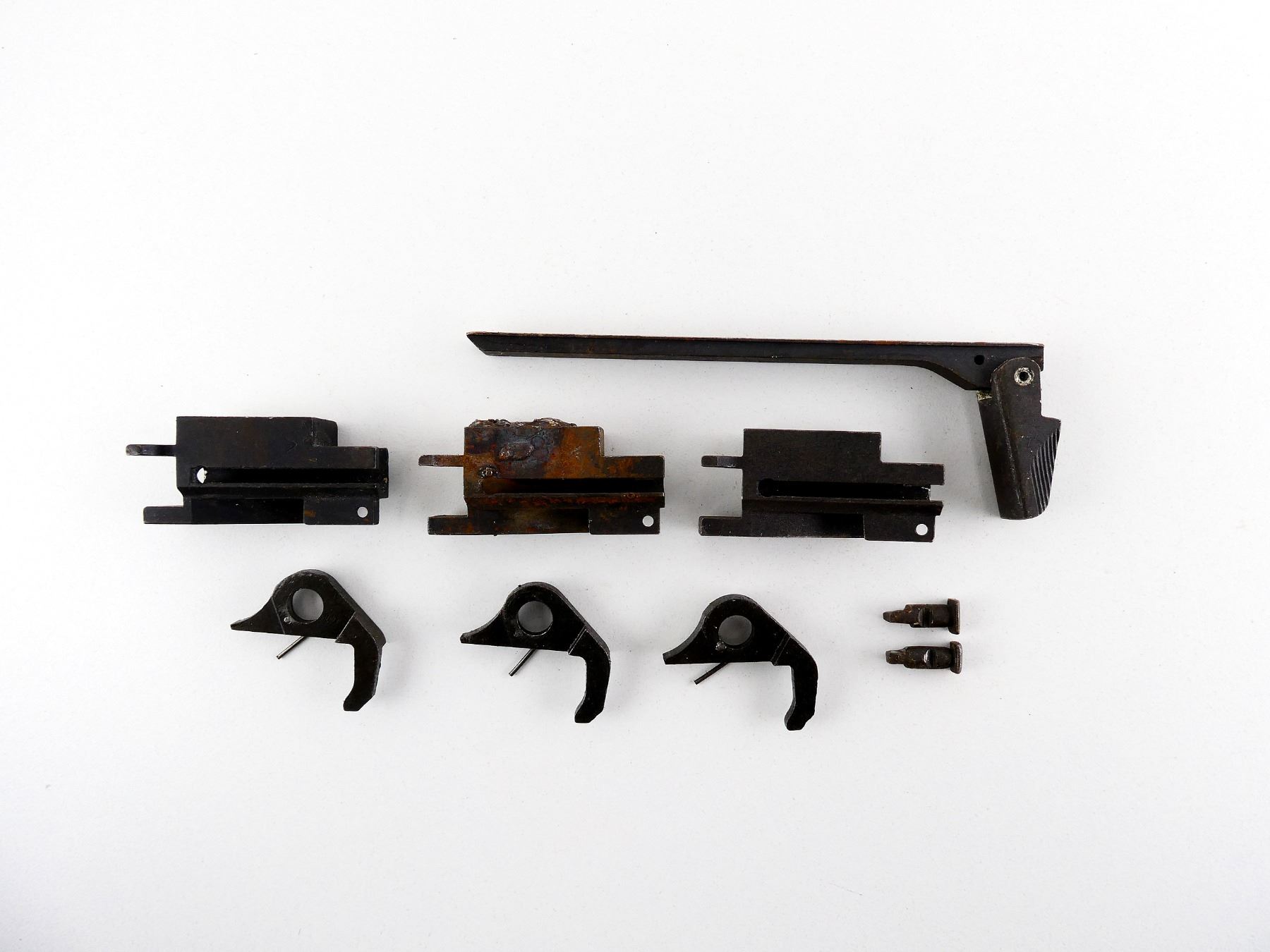 LOT INCLUDES; (3) EJECTOR BLOCKS, DAMAGED, (3) SAFETY SEARS, (1) COCKING HANDLE, ETC. MAY REQUIRE FITTING. SEE PHOTOS.