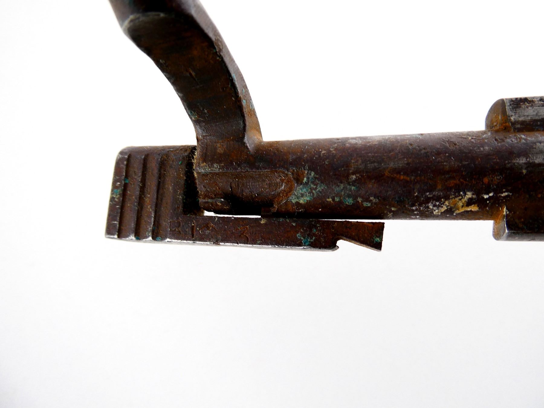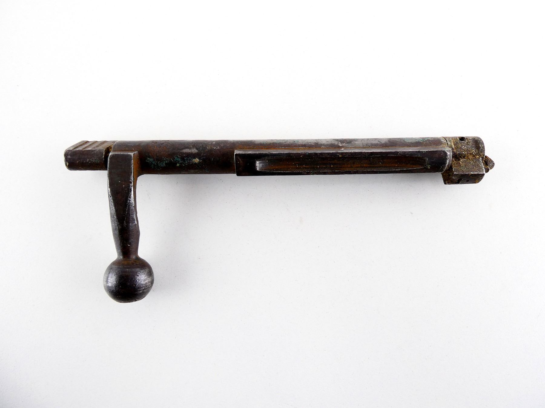 (1) .303 BR BOLT, APPEARS COMPLETE, STEEL CONSTRUCTION WITH RUST / PITTING, FITS .303 NO.4 SERIES RIFLES, MARKED: "O" (BOLT HEAD) & "AQ3414". MAY REQUIRE FITTING. SEE PHOTOS.