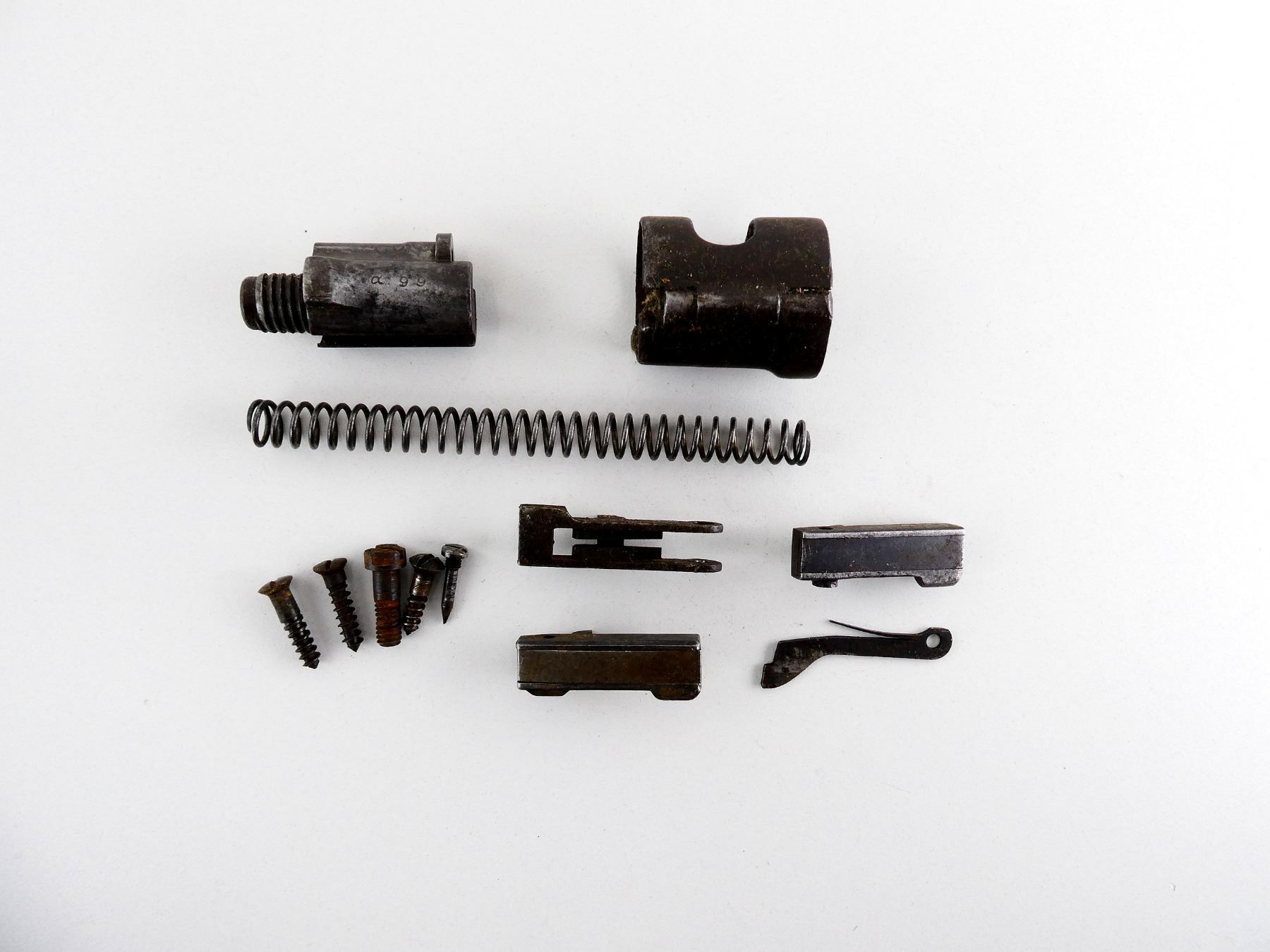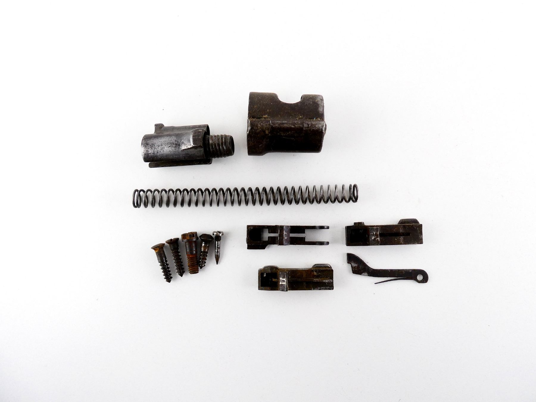 LOT INCLUDES; BOLT STOPS, FIRING PIN SPRING, BOLT SHROUD, 98A FRONT BARREL BAND, VARIOUS SCREWS, ETC. MAY REQUIRE FITTING. SEE PHOTOS.