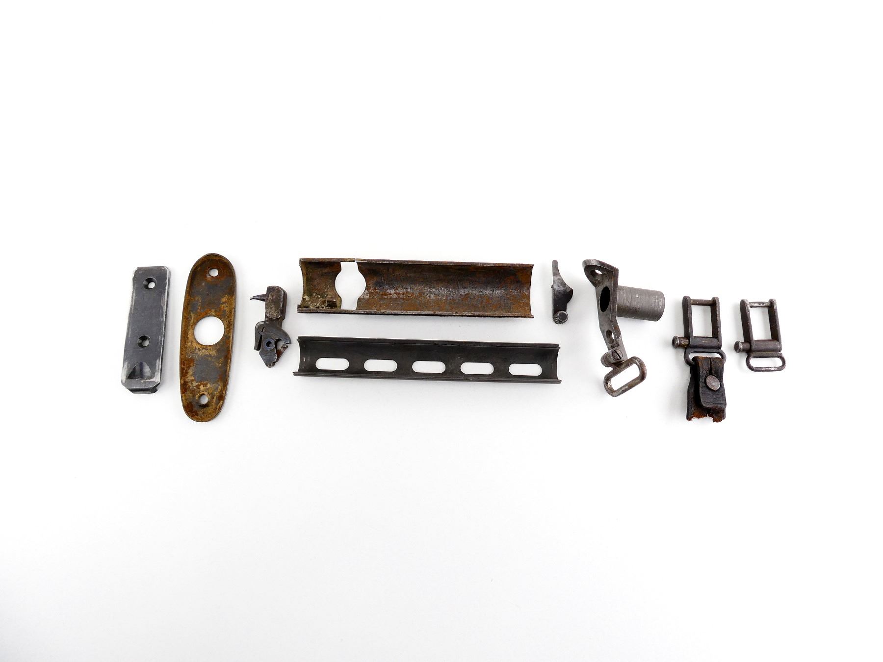 LOT INCLUDES; ARISAKA DUST COVER, SKS BUTT PLATE, MAUSER SLING SWIVELS, HEAT SHIELD, BROWNING BAR REAR SLING SWIVEL, ETC. MAY REQUIRE FITTING. SEE PHOTOS.