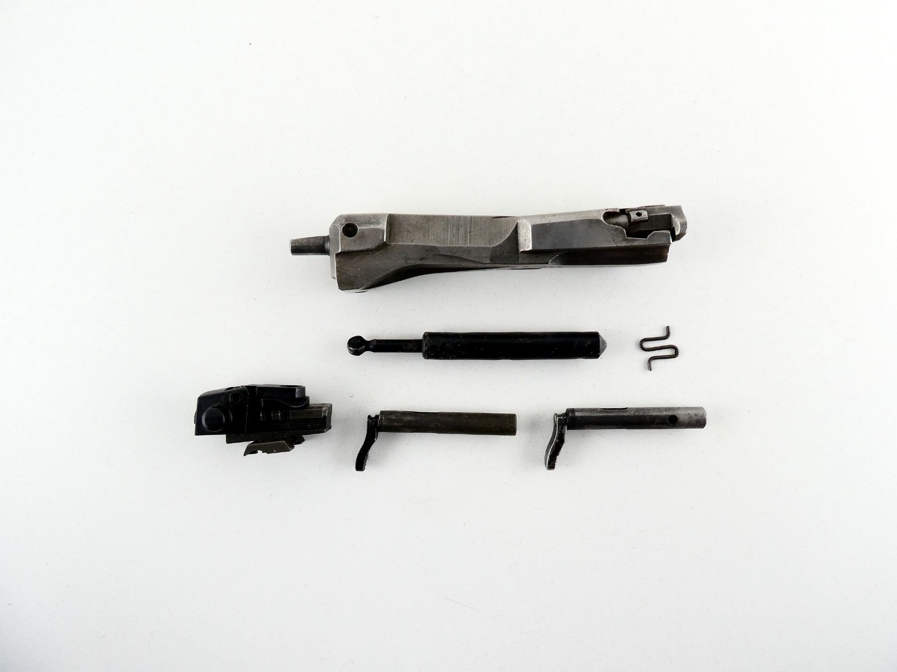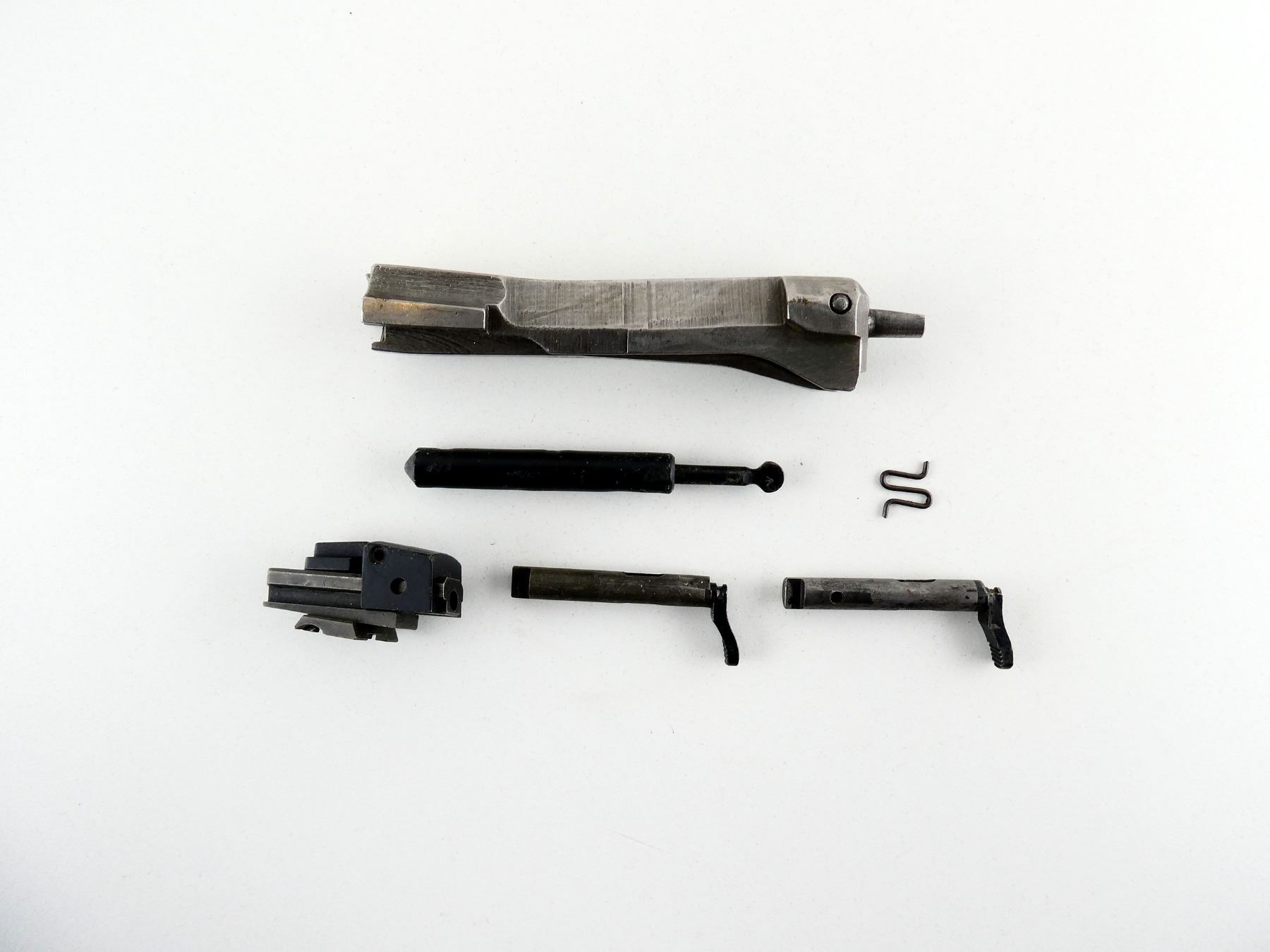 LOT INCLUDES; (1) BOLT ASSEMBLY, (1) FOLDING REAR SIGHT, (1) HAMMER SPRING, (2) BOLT STOPS, ETC. MAY REQUIRE FITTING. SEE PHOTOS.