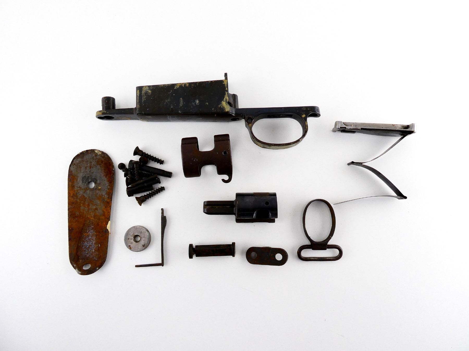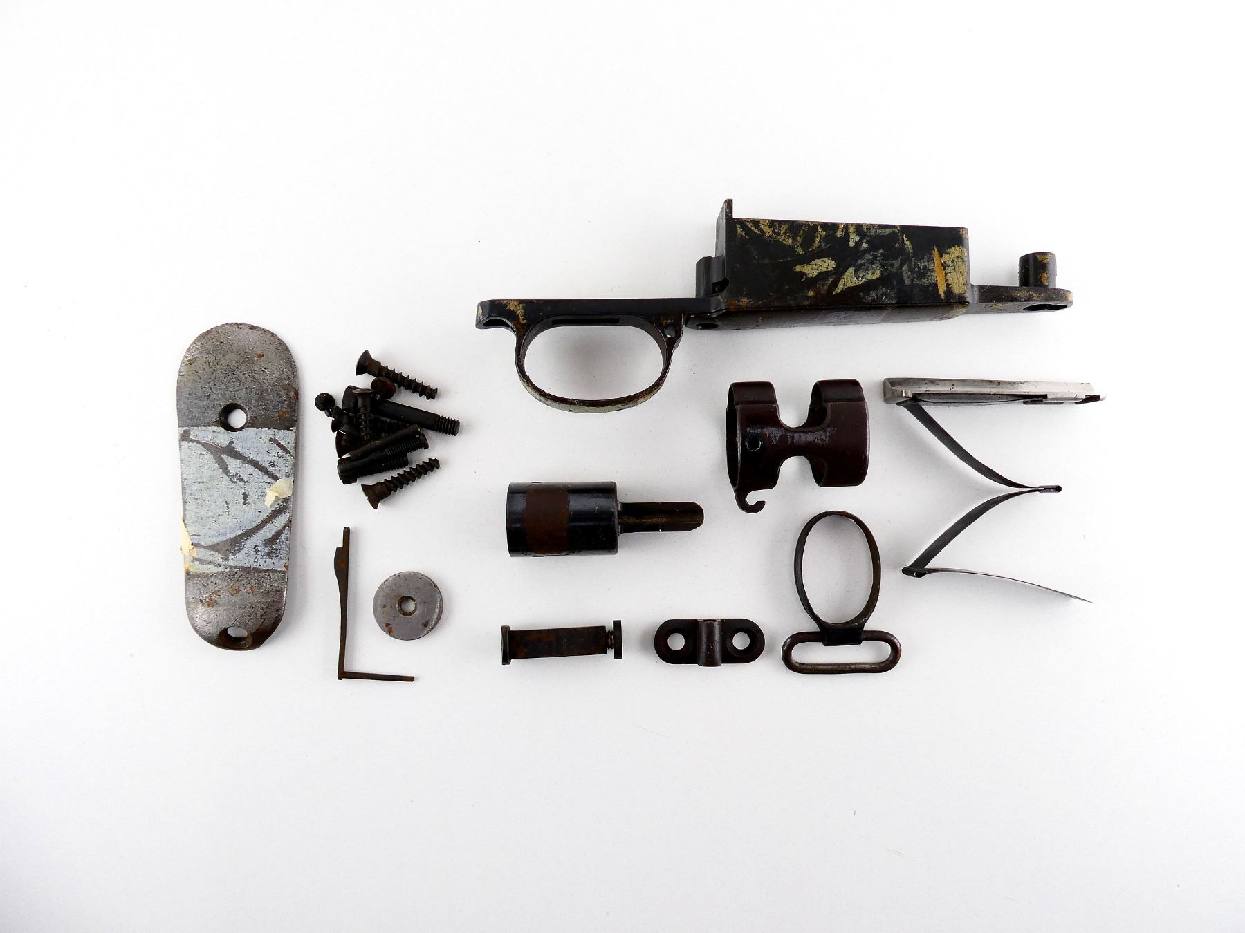 LOT INCLUDES; (1) TRIGGER GUARD ASSEMBLY, BARREL BANDS, BAYONET LUG, BUTT PLATE, SWIVEL STUD, STOCK DISC, RECOIL LUG, VARIOUS PINS / SCREWS, ETC. MAY REQUIRE FITTING. SEE PHOTOS.