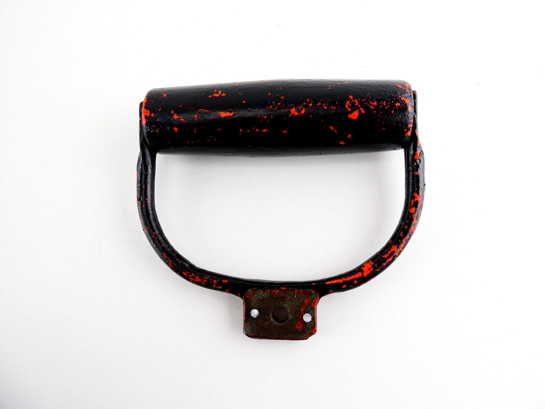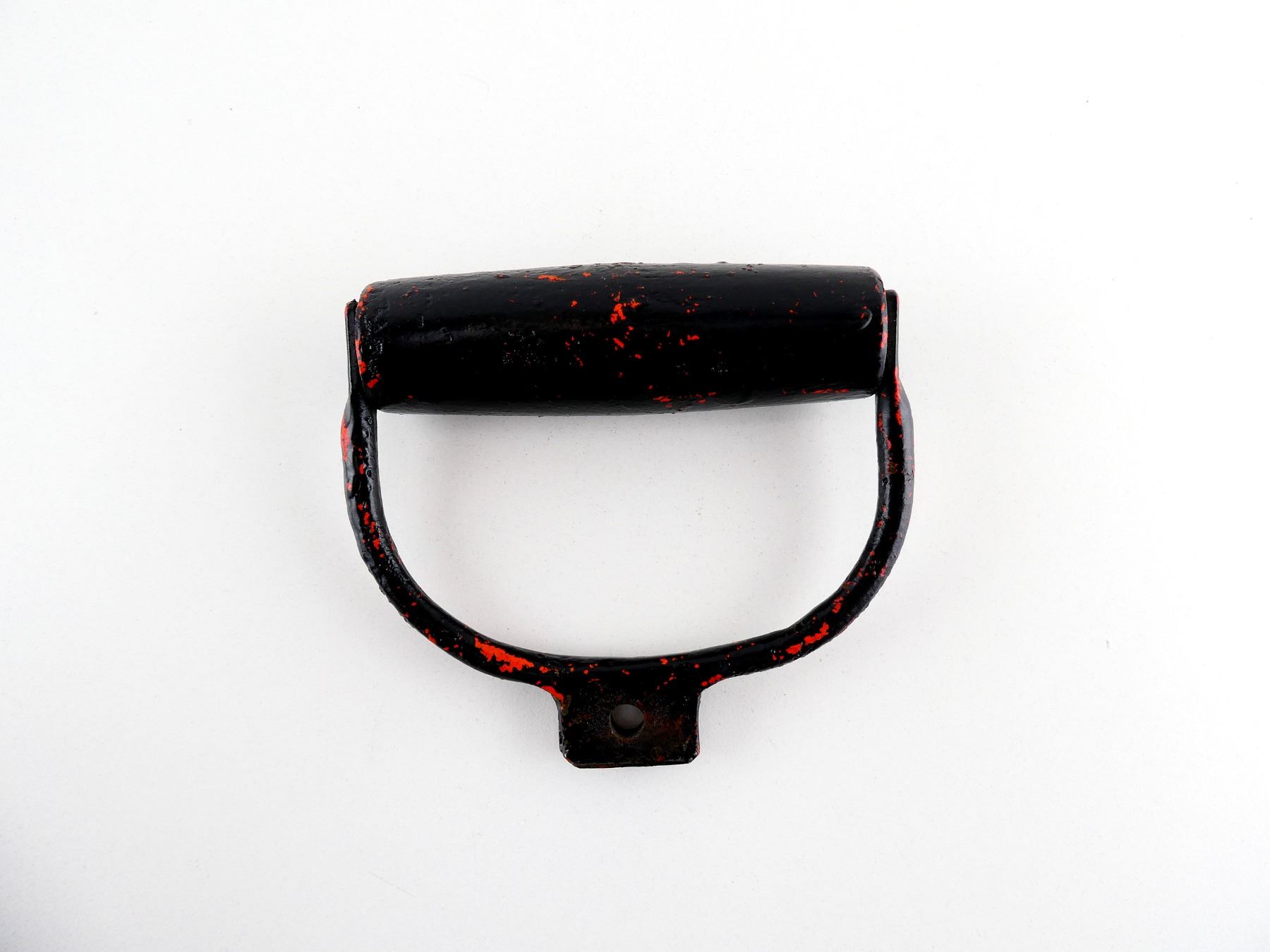 (1) CARRYING HANDLE, PAINTED ORANGE & BLACK STEEL WITH WOOD CONSTRUCTION, MISSING BARREL JACKET BAND. MAY REQUIRE FITTING. SEE PHOTOS.