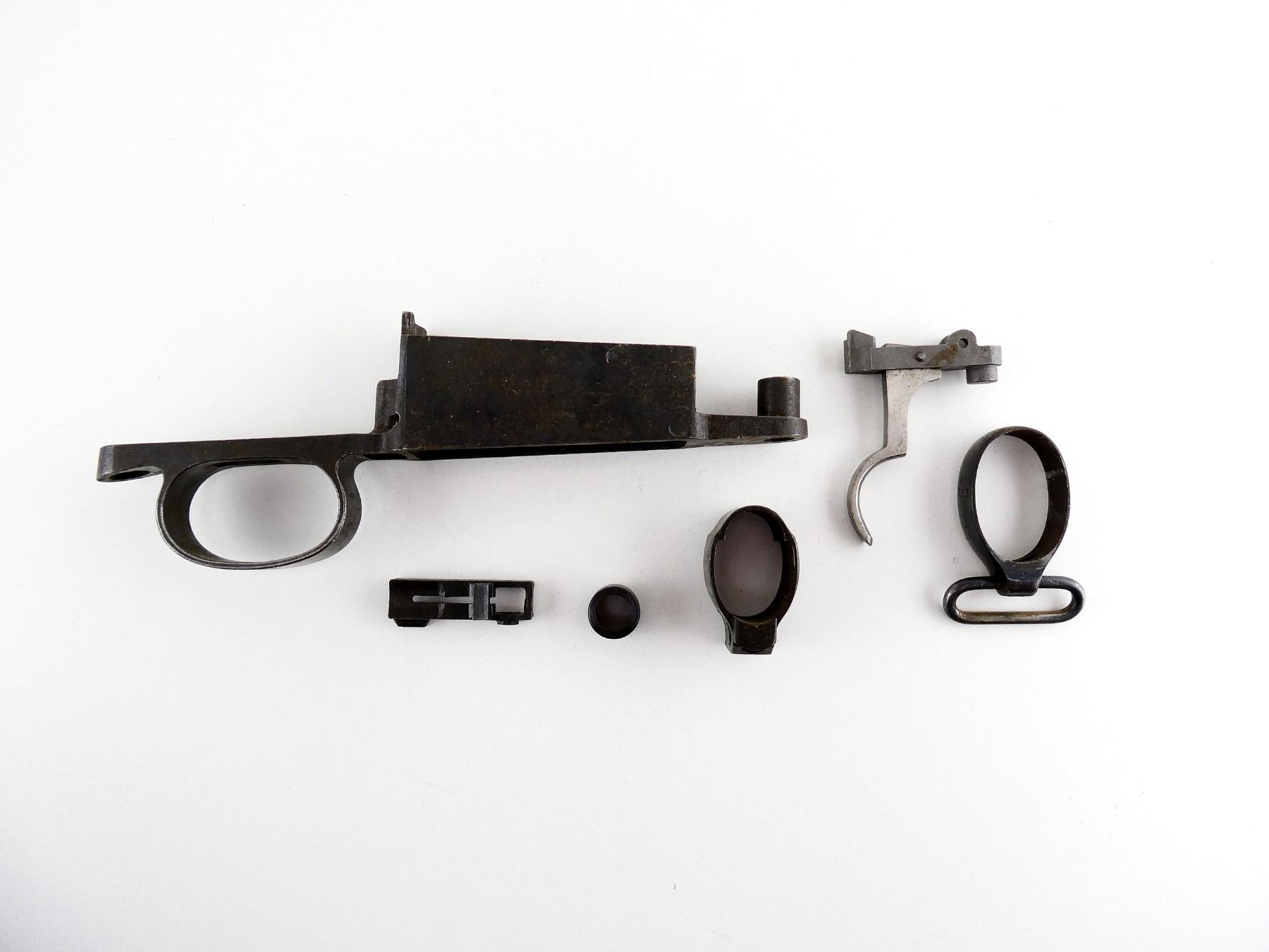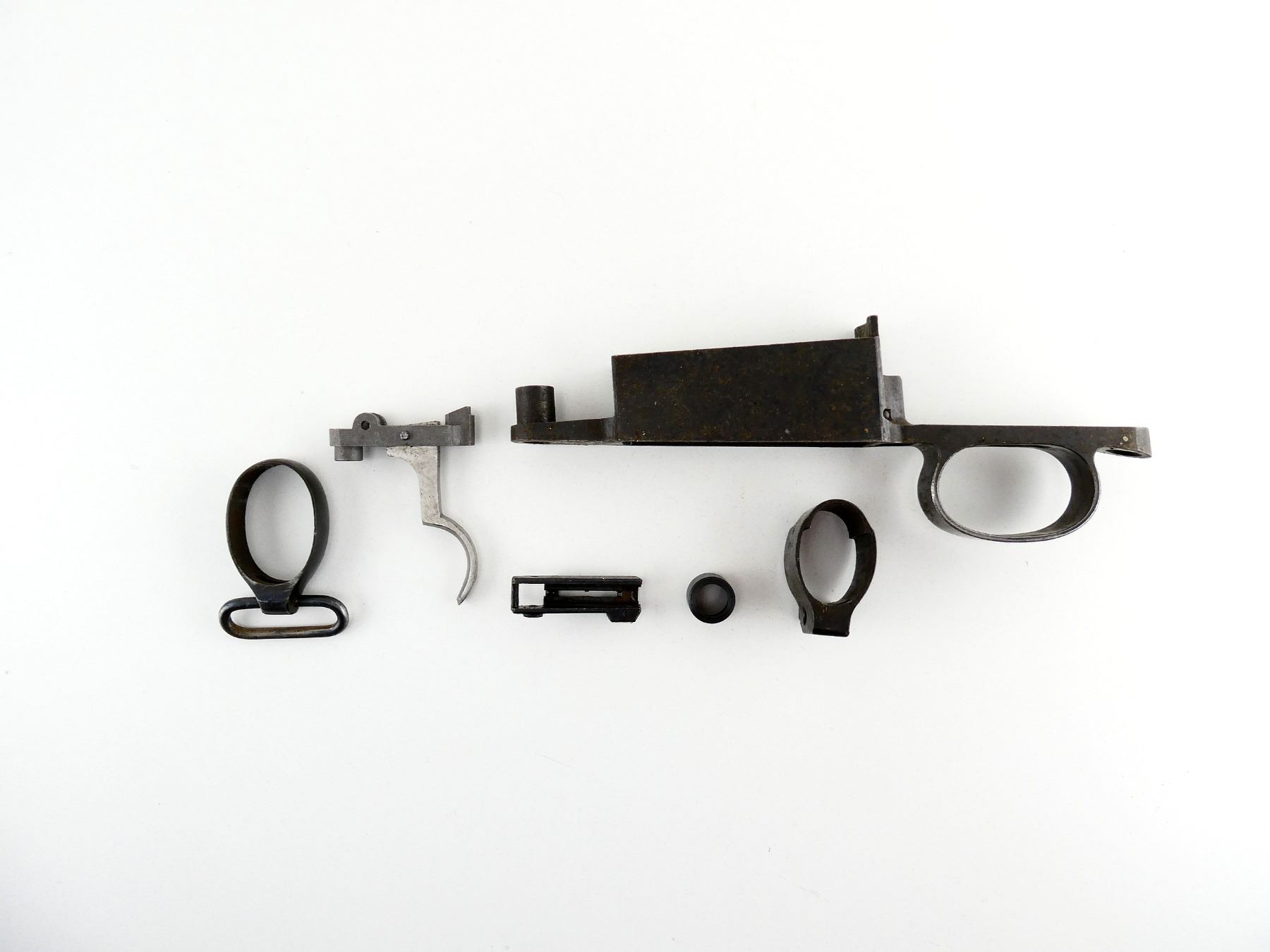 LOT INCLUDES; BARREL BANDS, TRIGGER GUARD, TRIGGER, SEAR, BOLT STOP, THREADED MUZZLE CAP, ETC. MAY REQUIRE FITTING. SEE PHOTOS.