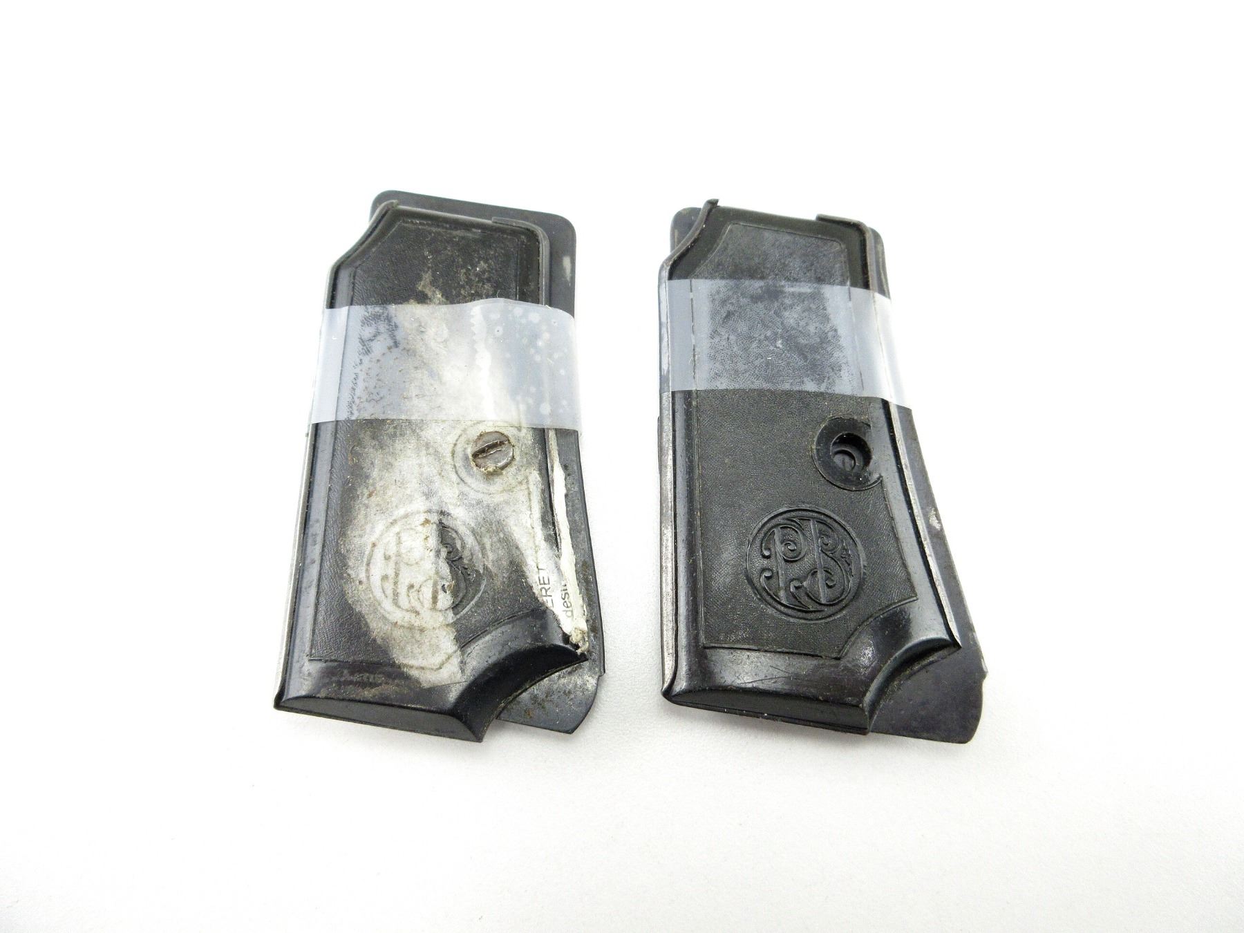 LOT INCLUDES; (2) SETS OF SMOOTH BLACK POLYMER GRIPS, NO SCREWS, WITH BERETTA LOGO. MAY REQUIRE FITTING. SEE PHOTOS.