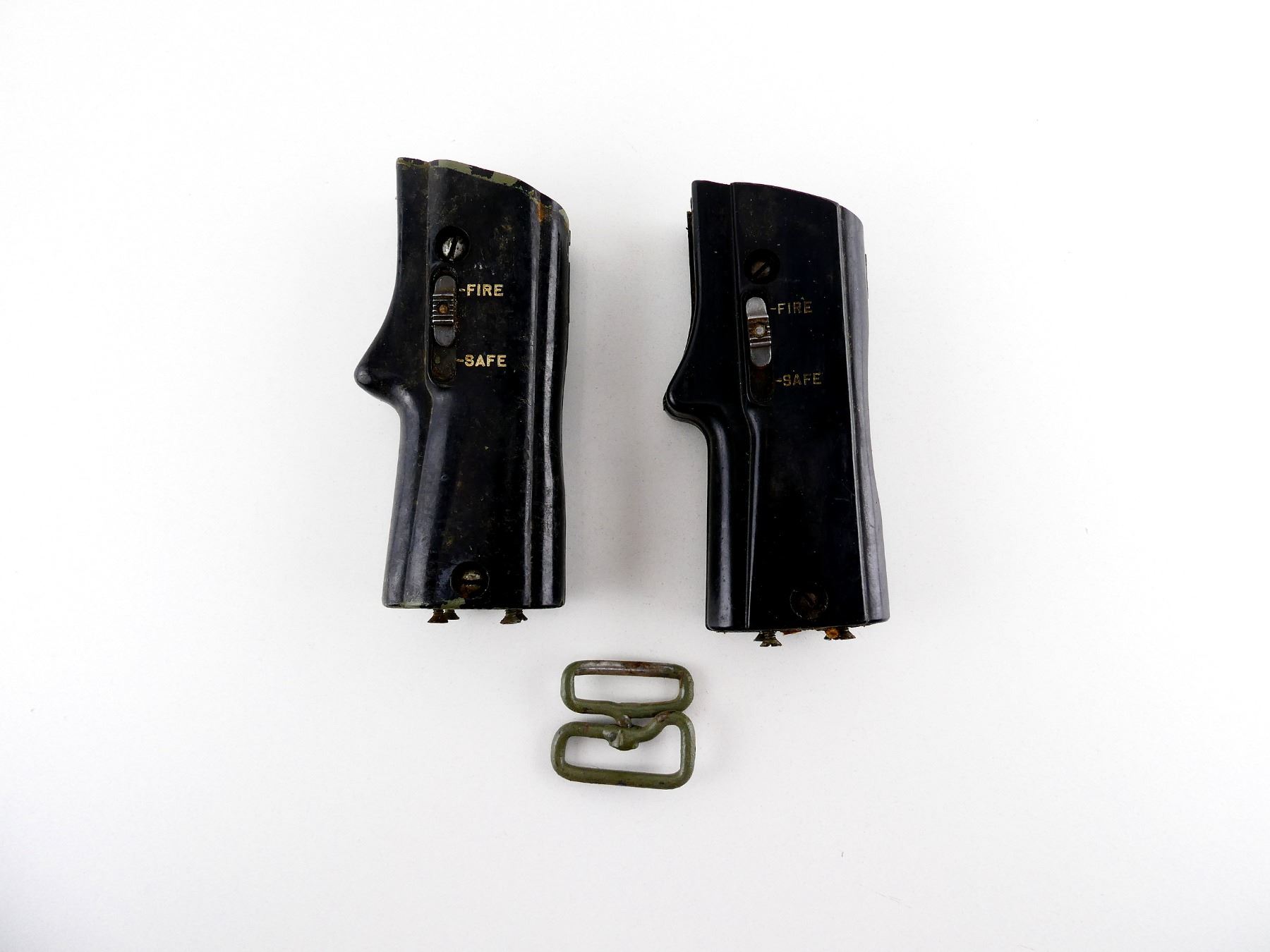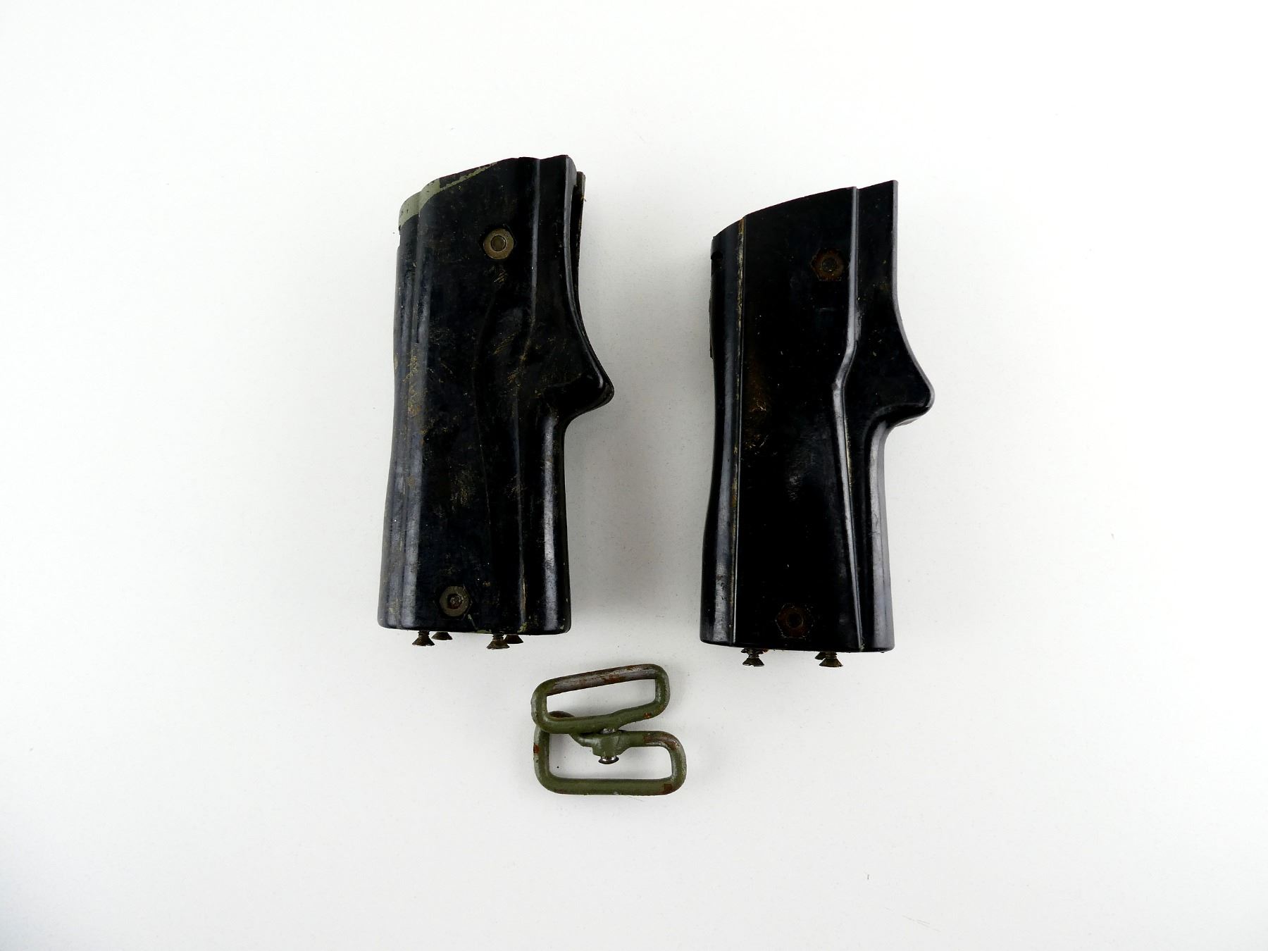 LOT INCLUDES; (2) GRIP ASSEMBLIES WITH SAFETY & SCREWS & (1) SLING SWIVEL. MAY REQUIRE FITTING. SEE PHOTOS.