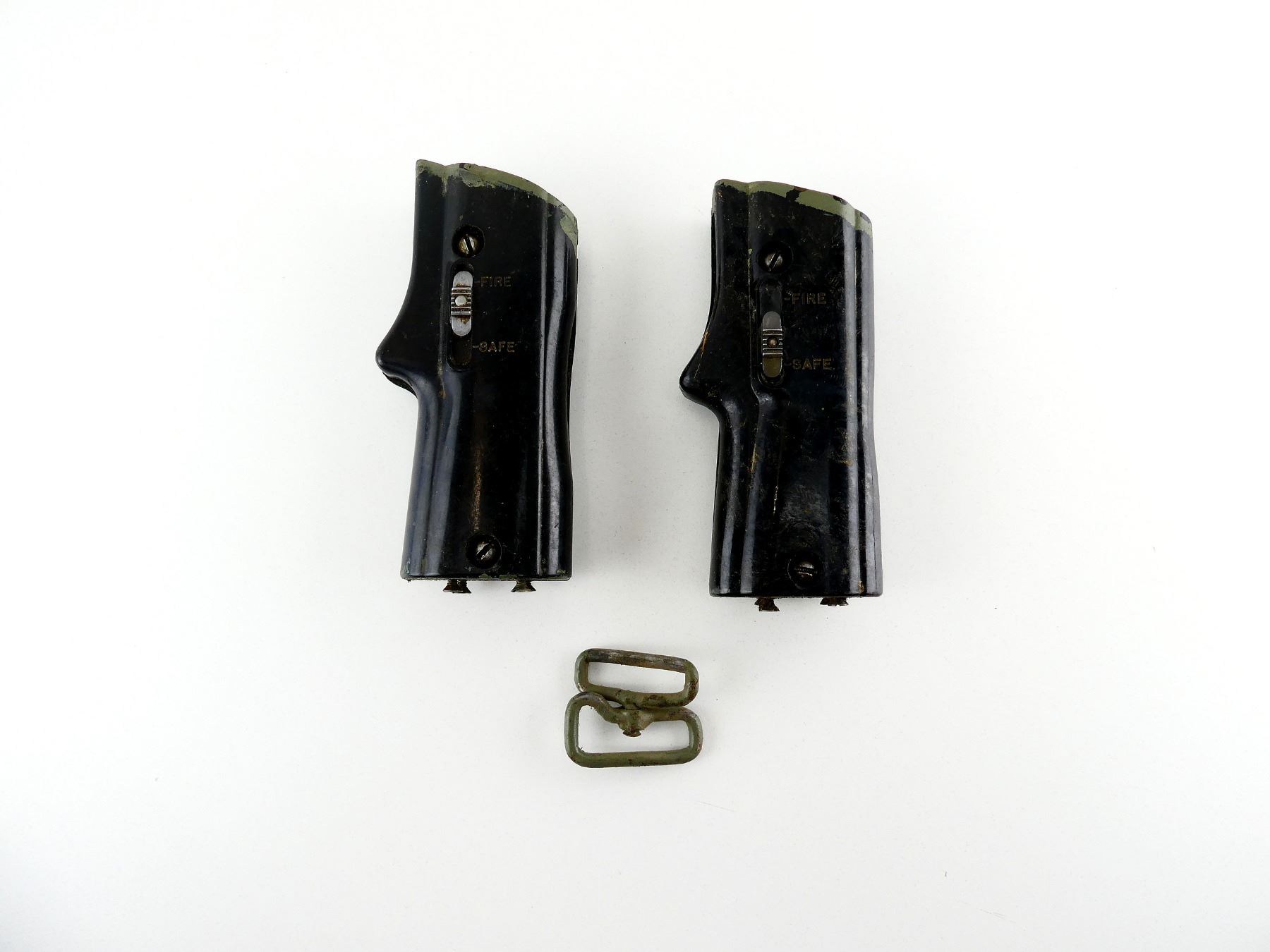 LOT INCLUDES; (2) GRIP ASSEMBLIES WITH SAFETY & SCREWS & (1) SLING SWIVEL. MAY REQUIRE FITTING. SEE PHOTOS.