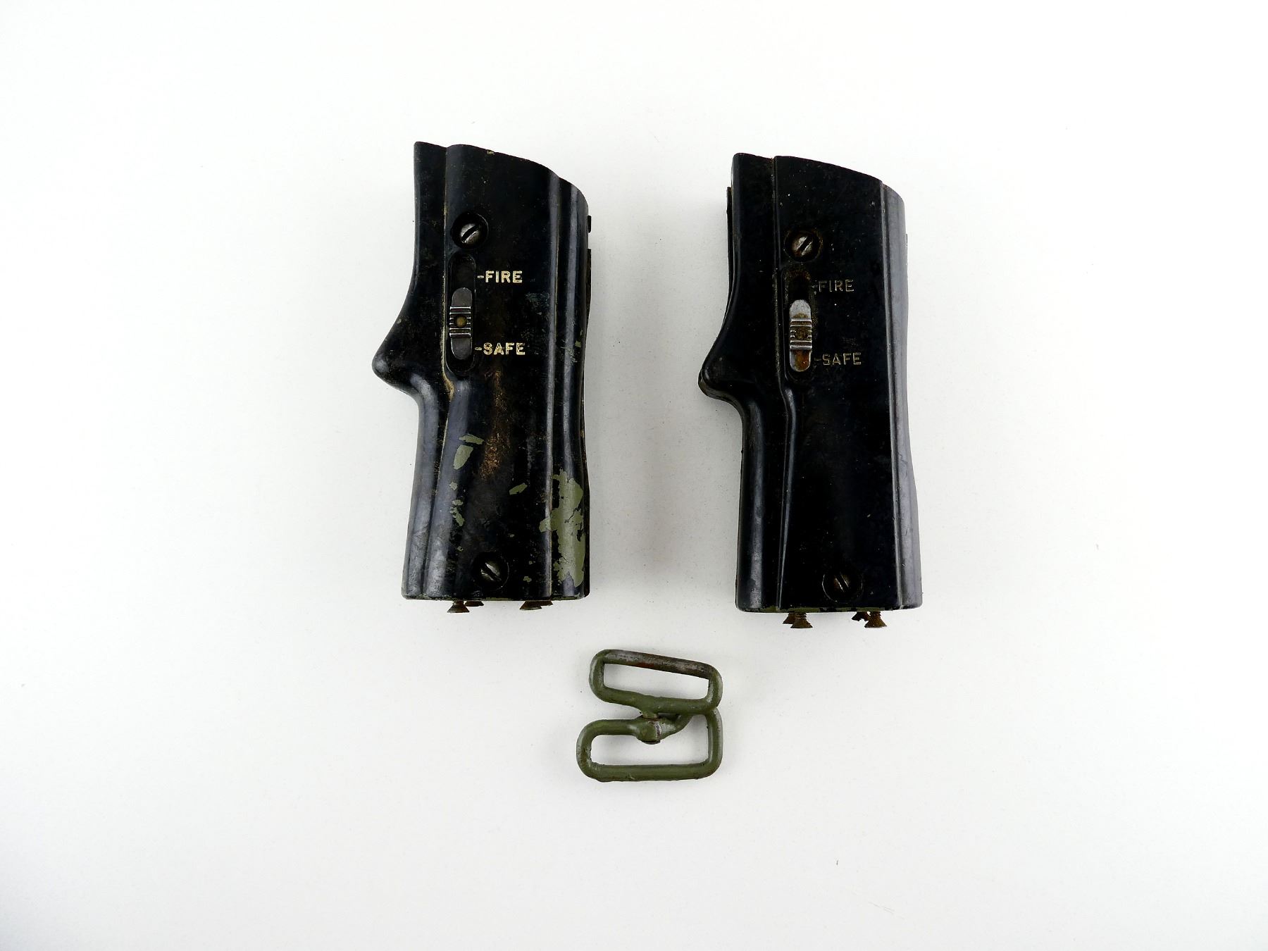 LOT INCLUDES; (2) GRIP ASSEMBLIES WITH SAFETY & SCREWS & (1) SLING SWIVEL. MAY REQUIRE FITTING. SEE PHOTOS.