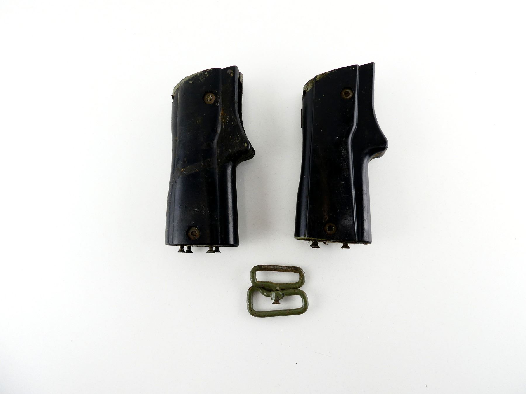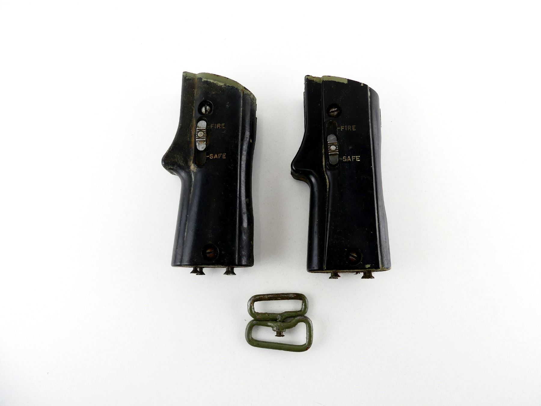 LOT INCLUDES; (2) GRIP ASSEMBLIES WITH SAFETY & SCREWS & (1) SLING SWIVEL. MAY REQUIRE FITTING. SEE PHOTOS.