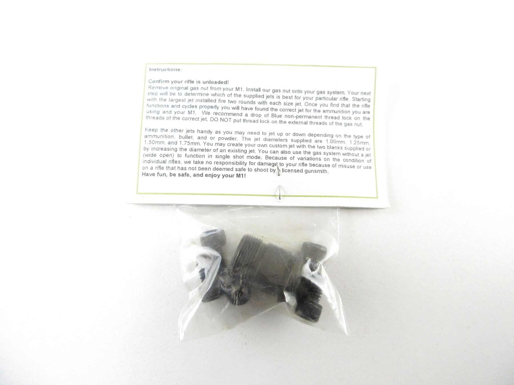 (1) GAS SYSTEM INCLUDES; GAS PLUG, (5) VARIOUS SIZE SCREWS, APPEARS NEW OLD STOCK IN ORIGINAL PACKAGING. MAY REQUIRE FITTING. SEE PHOTOS.