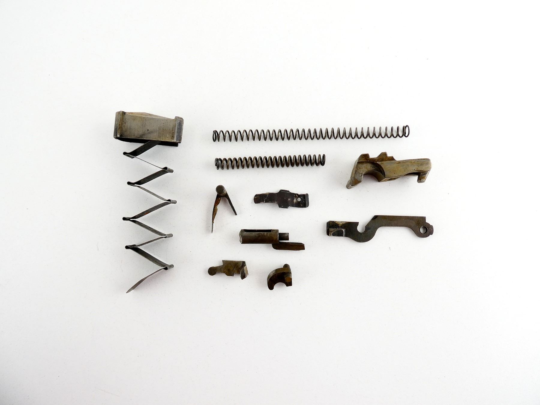 VARIOUS MARKINGS, LOT INCLUDES; LOCKING BLOCK, SEAR WITH SPRING, RETURN SPRING, MAG FOLLOWER WITH SPRING, VARIOUS OTHER TRIGGER PARTS, ETC. MAY REQUIRE FITTING. SEE PHOTOS.