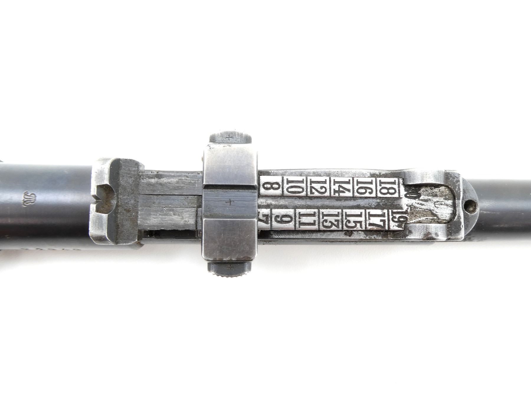(1) POSSIBLY 7.65X53MM ?, BORE IS FAIR, BLUED STEEL CONSTRUCTION, MARKED: "H2949", WITH FRONT & REAR SIGHTS, OVERALL LENGTH APPROX. 29.25". MAY REQUIRE FITTING. SEE PHOTOS. PAL REQUIRED.