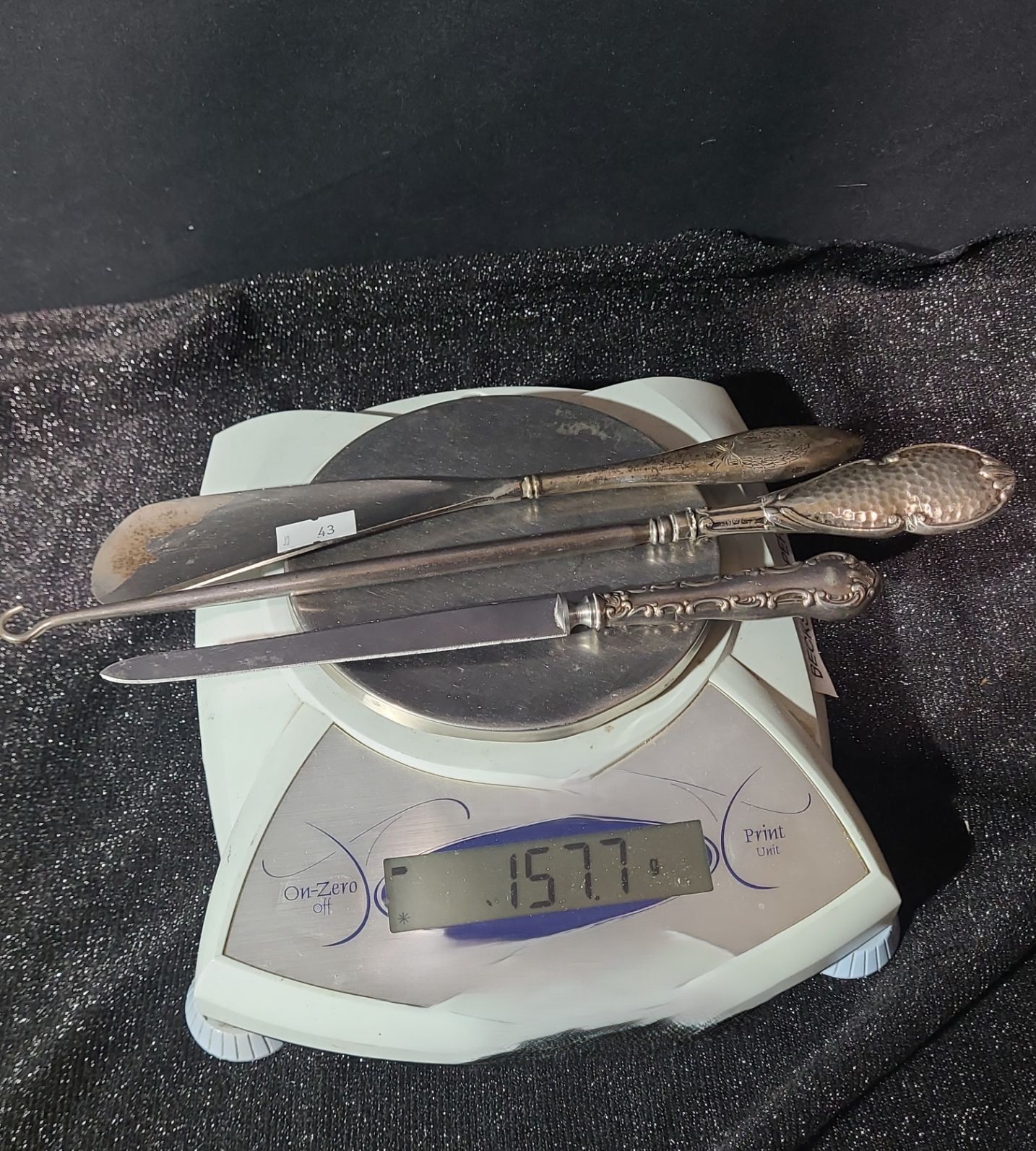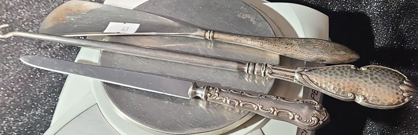 Lot 43 Sterling Shoehorn, Lacer and Letter Opener- Total Weight: 157.7 Grams, Blade Stainless