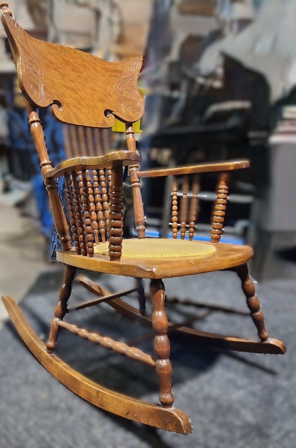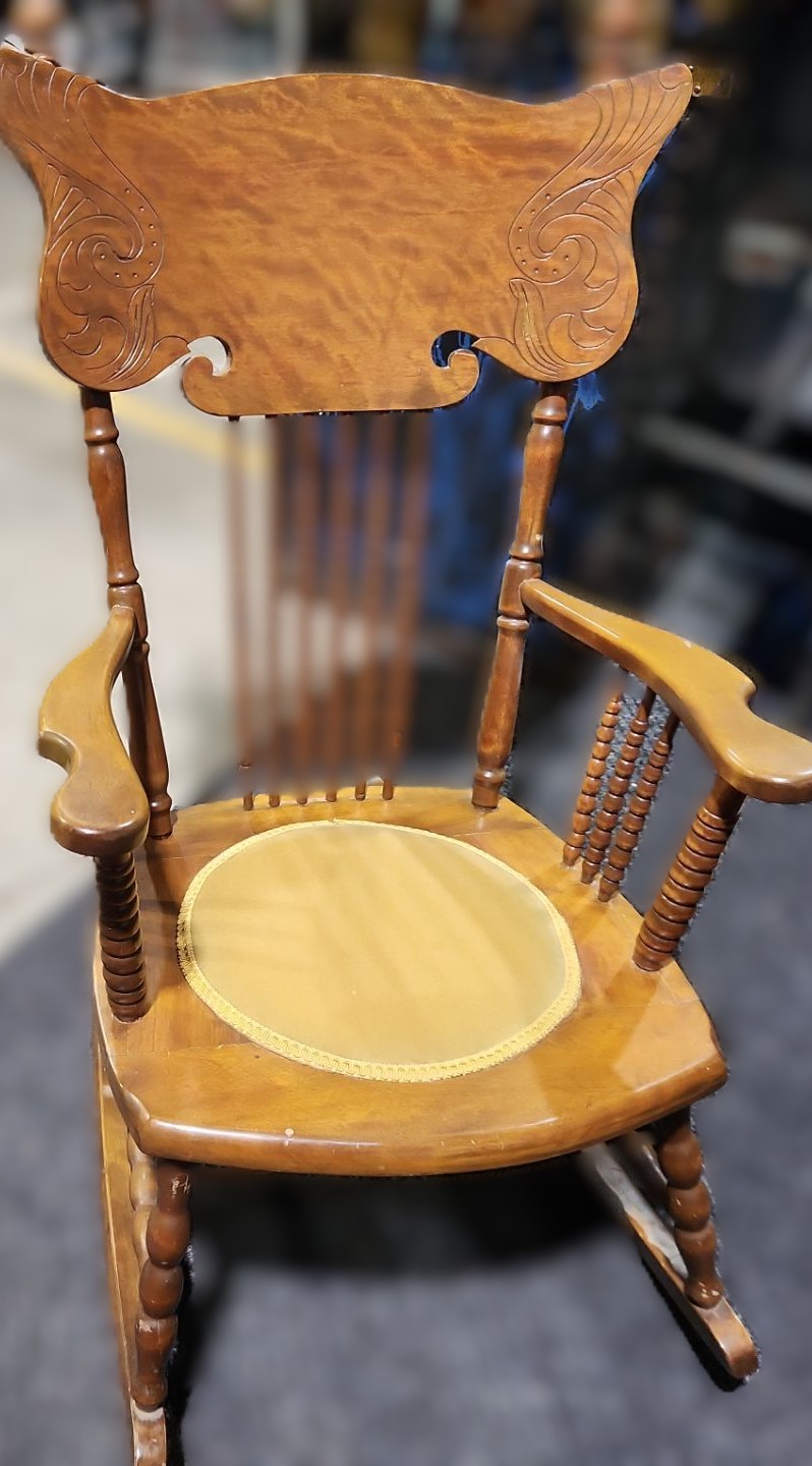 Lot 45 Wooden Rocking Chair w/ Design: Seat 18 D, Rocker 30 D, 38.5 T