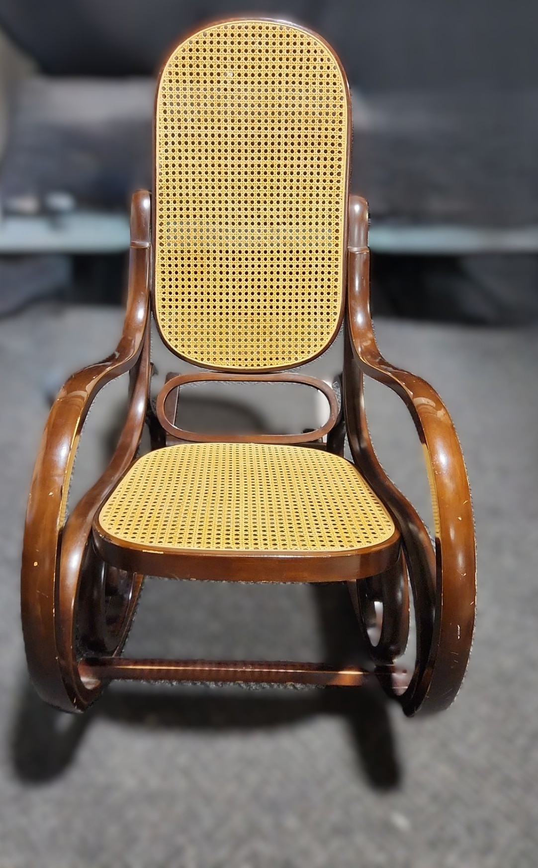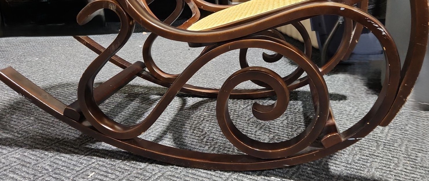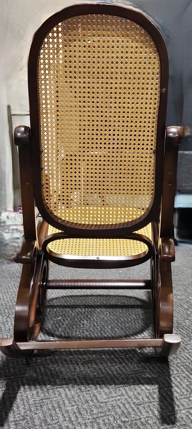 Lot 46 Wooden Rocking Chair w/ Rattan Seat and Back 22 W, Seat 20 D, Rocker 38.5 D, 44 T