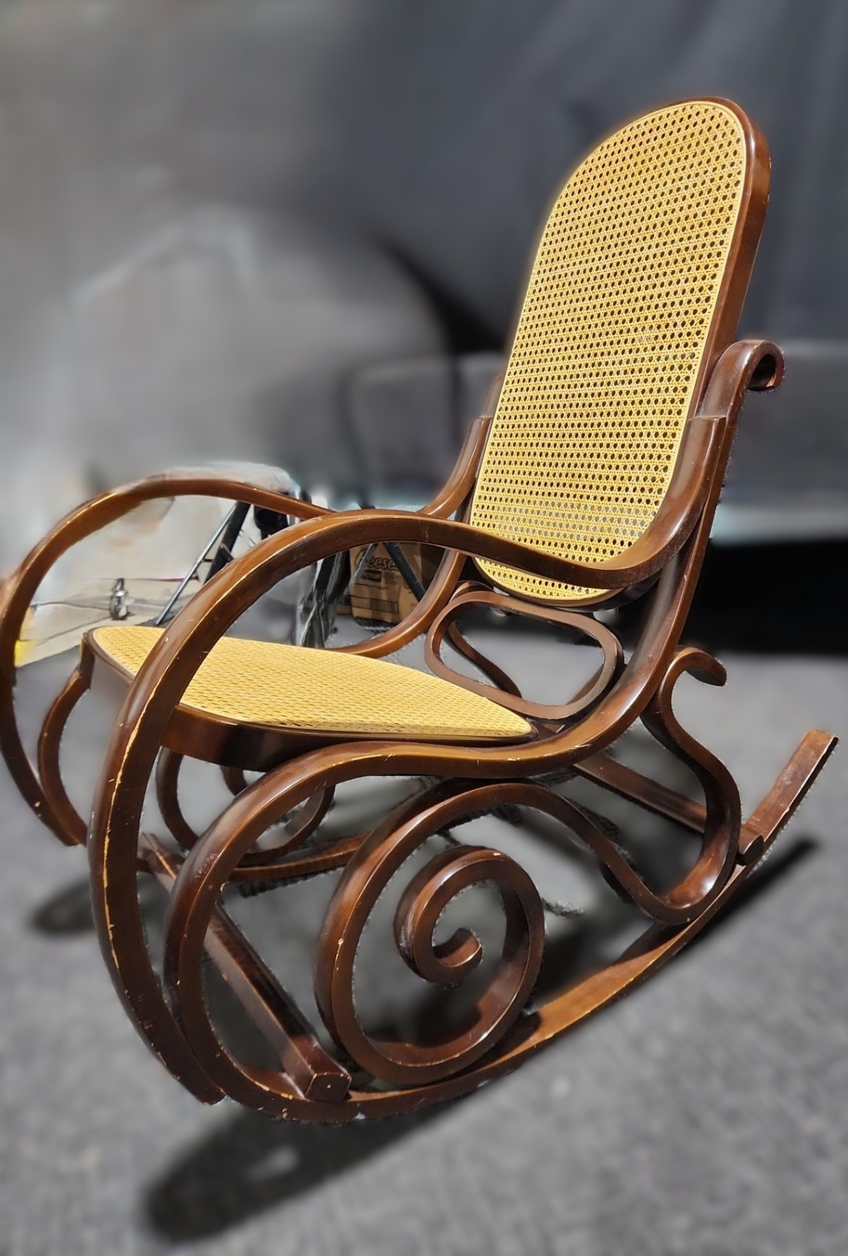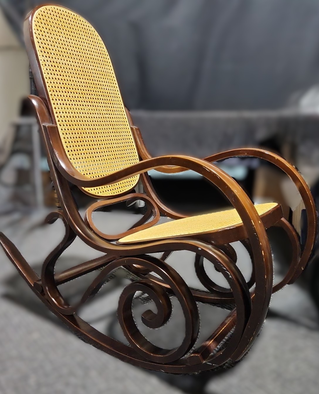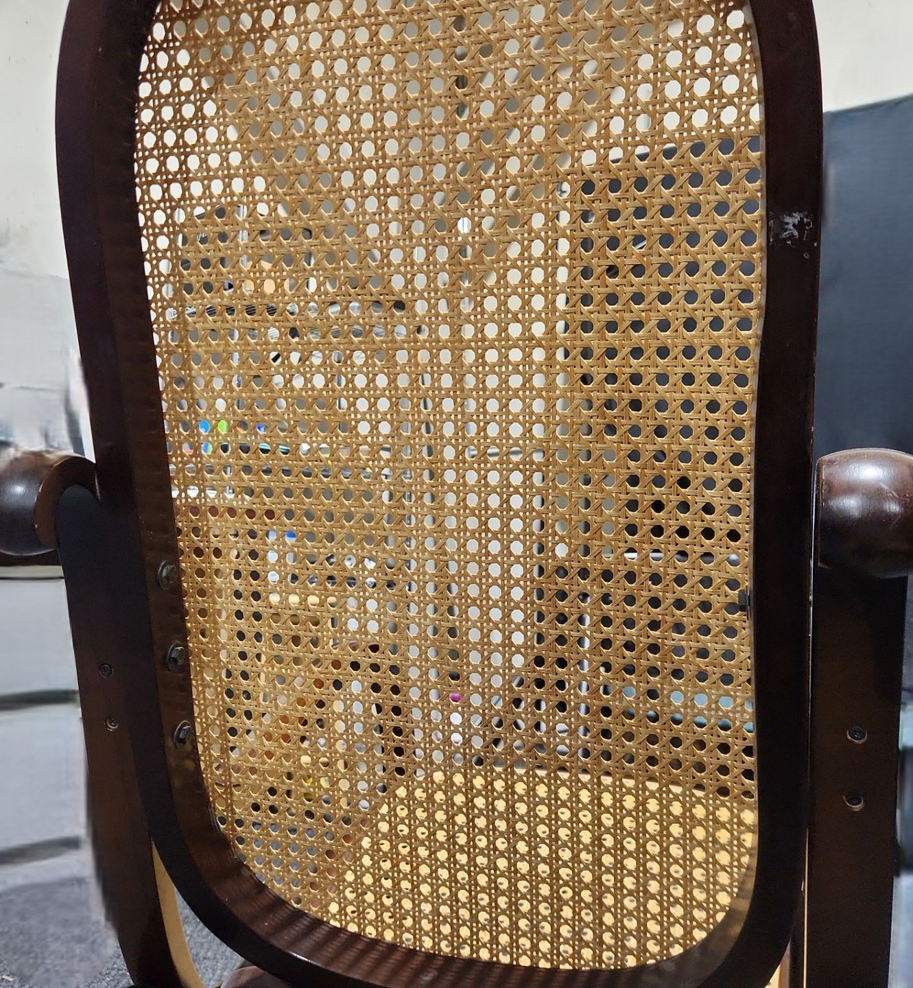 Lot 46 Wooden Rocking Chair w/ Rattan Seat and Back 22 W, Seat 20 D, Rocker 38.5 D, 44 T