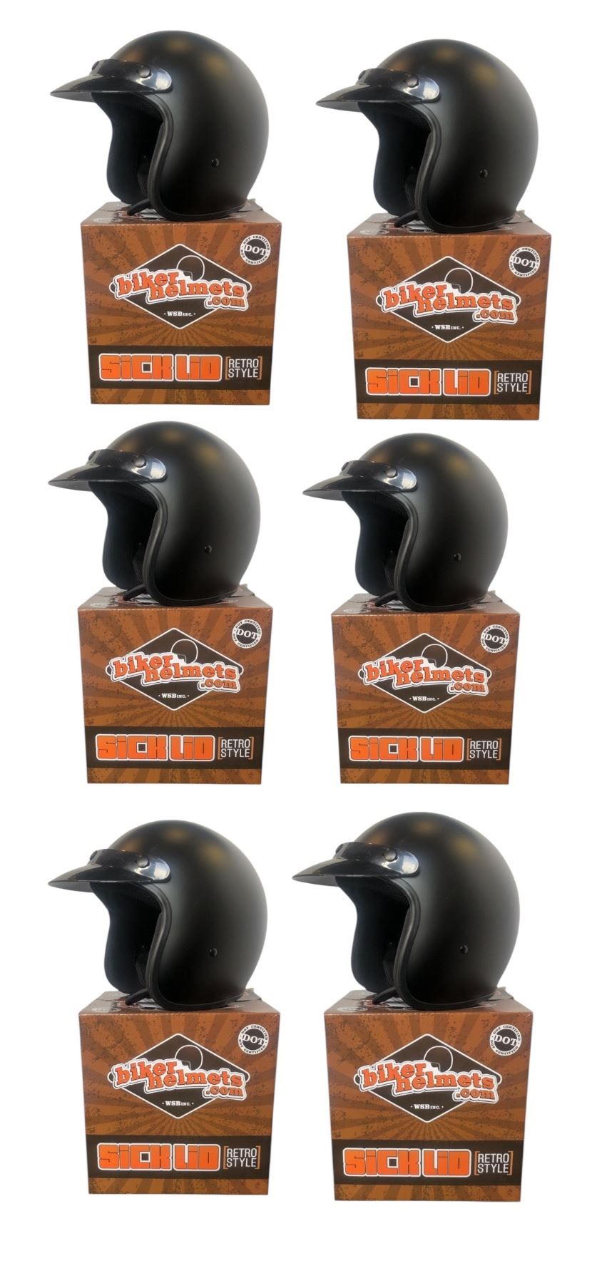 Lot of 6 New WSB Sick Lid Retro Style Open Faced Helmet w/ Snap on Visor (Matte Black) - Size S - Retail $1080