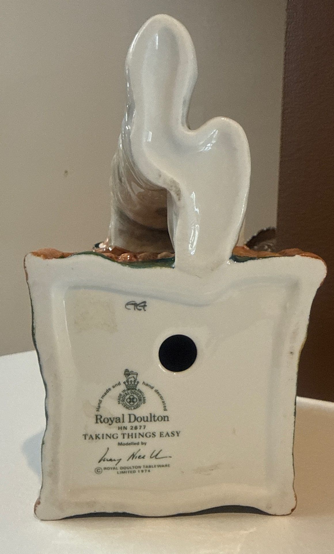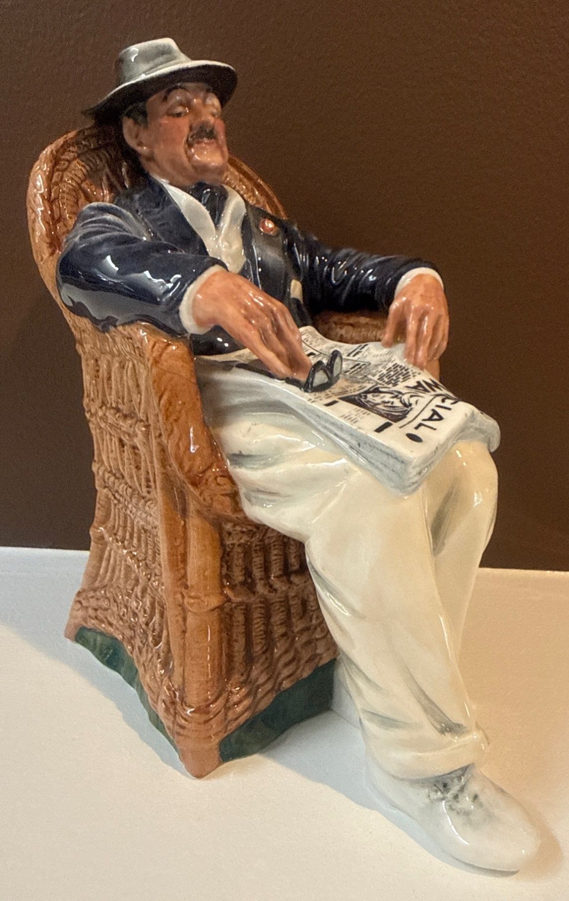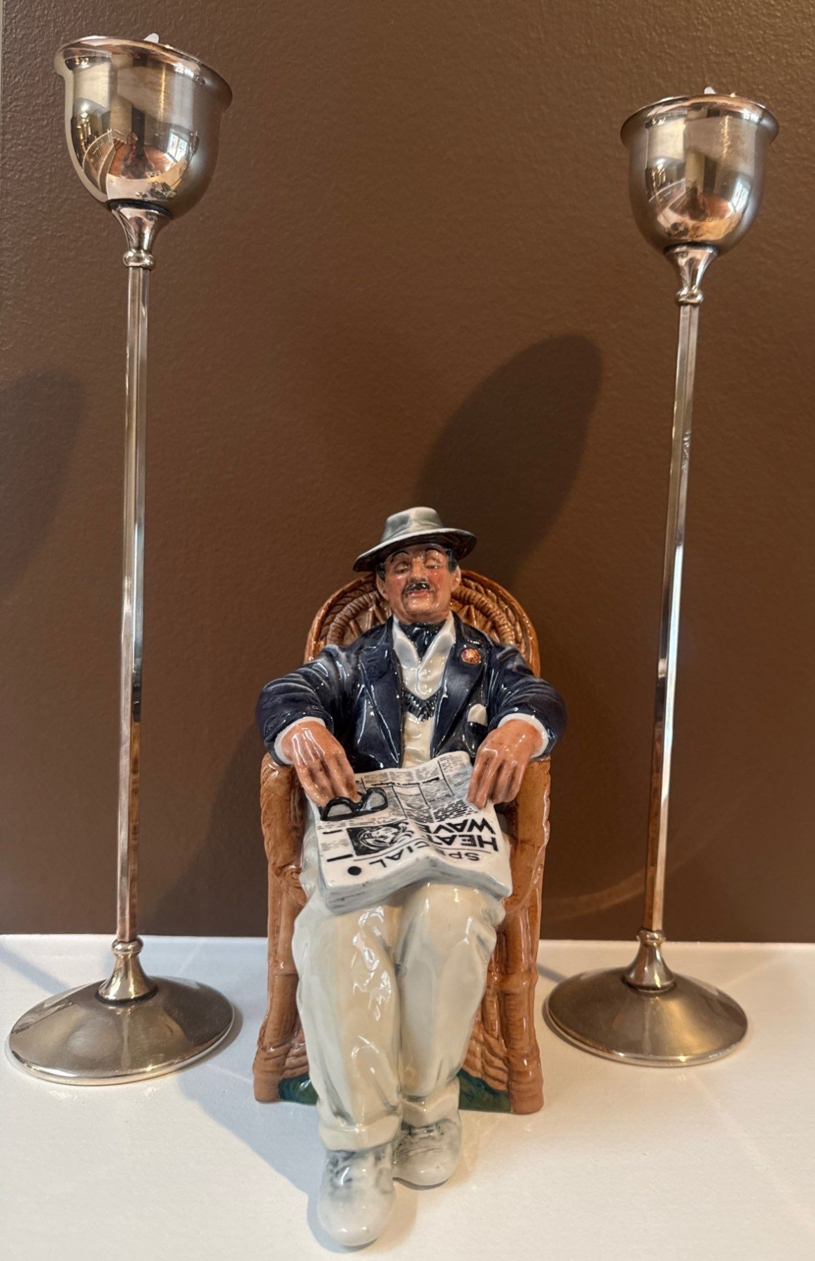 Lot 6 Royal Doulton Porcelain Figurine "Taking Things Easy " w/ Decorative Candle Holders