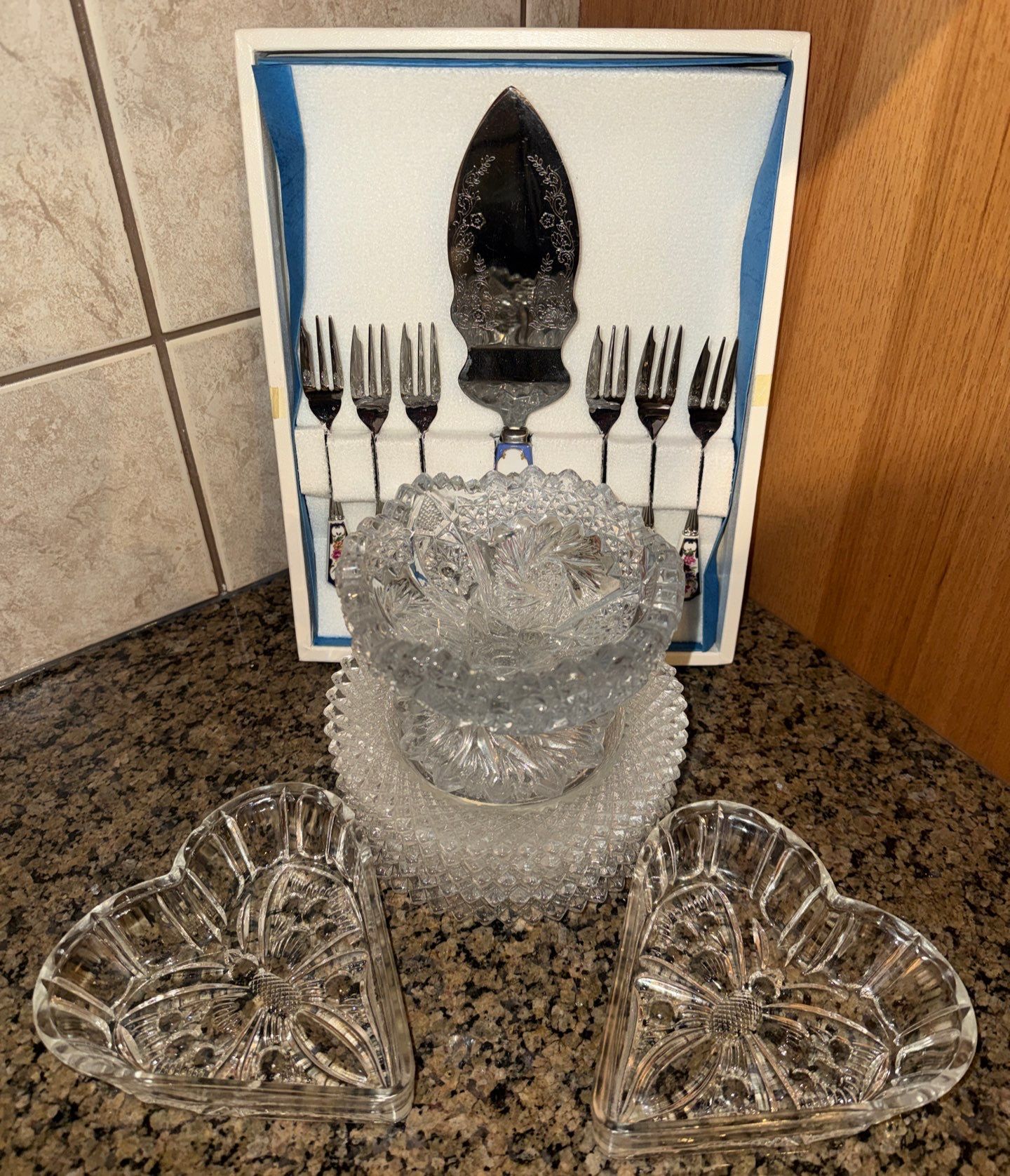 Lot 23 Vintage American Pressed Glass Pedestal Compote Dish Plates Heart Shaped Dishes & Serving Set