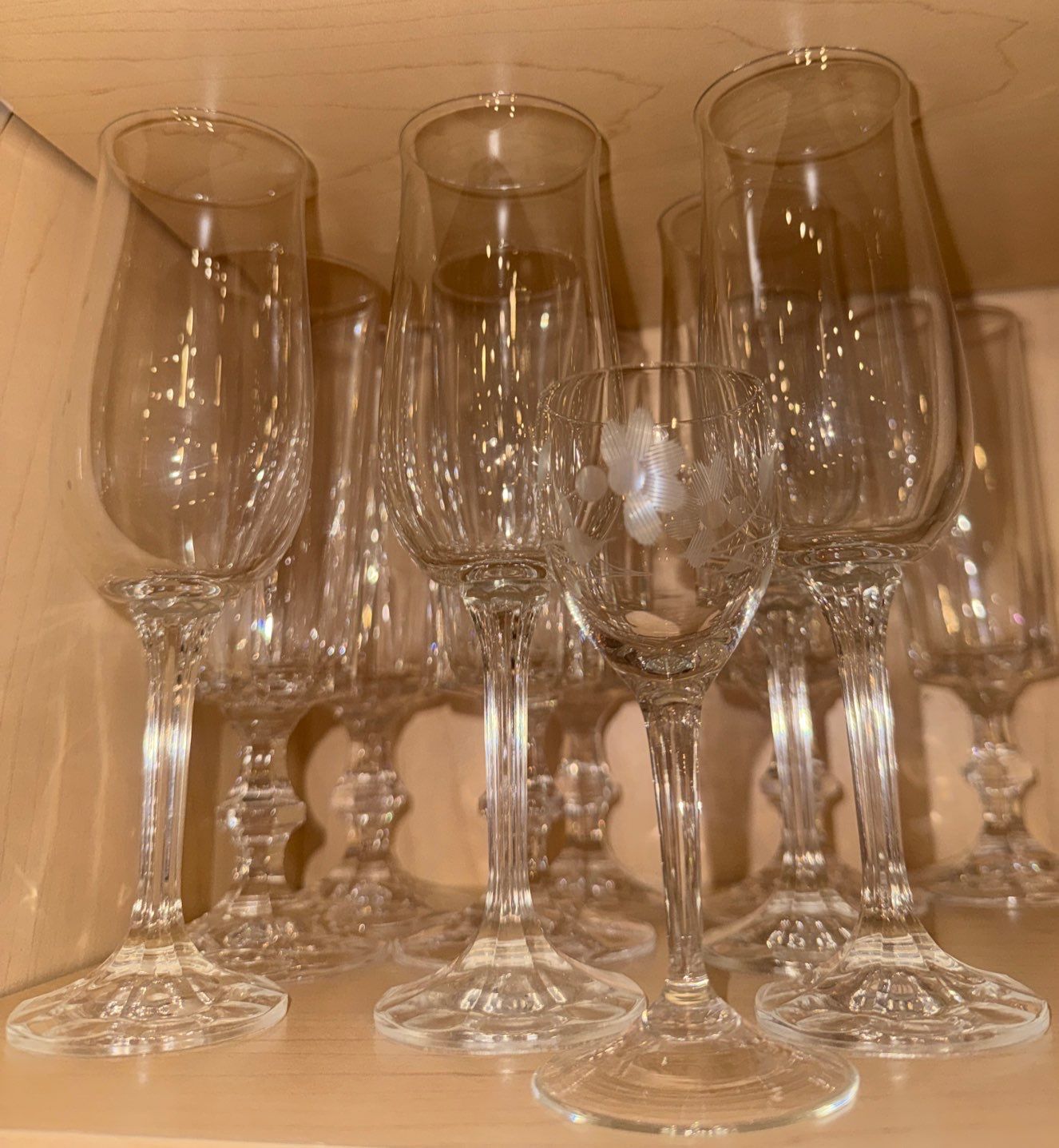 Lot 30 Collection Of Vintage Crystal Stemware - Champagne Flutes & Goblets