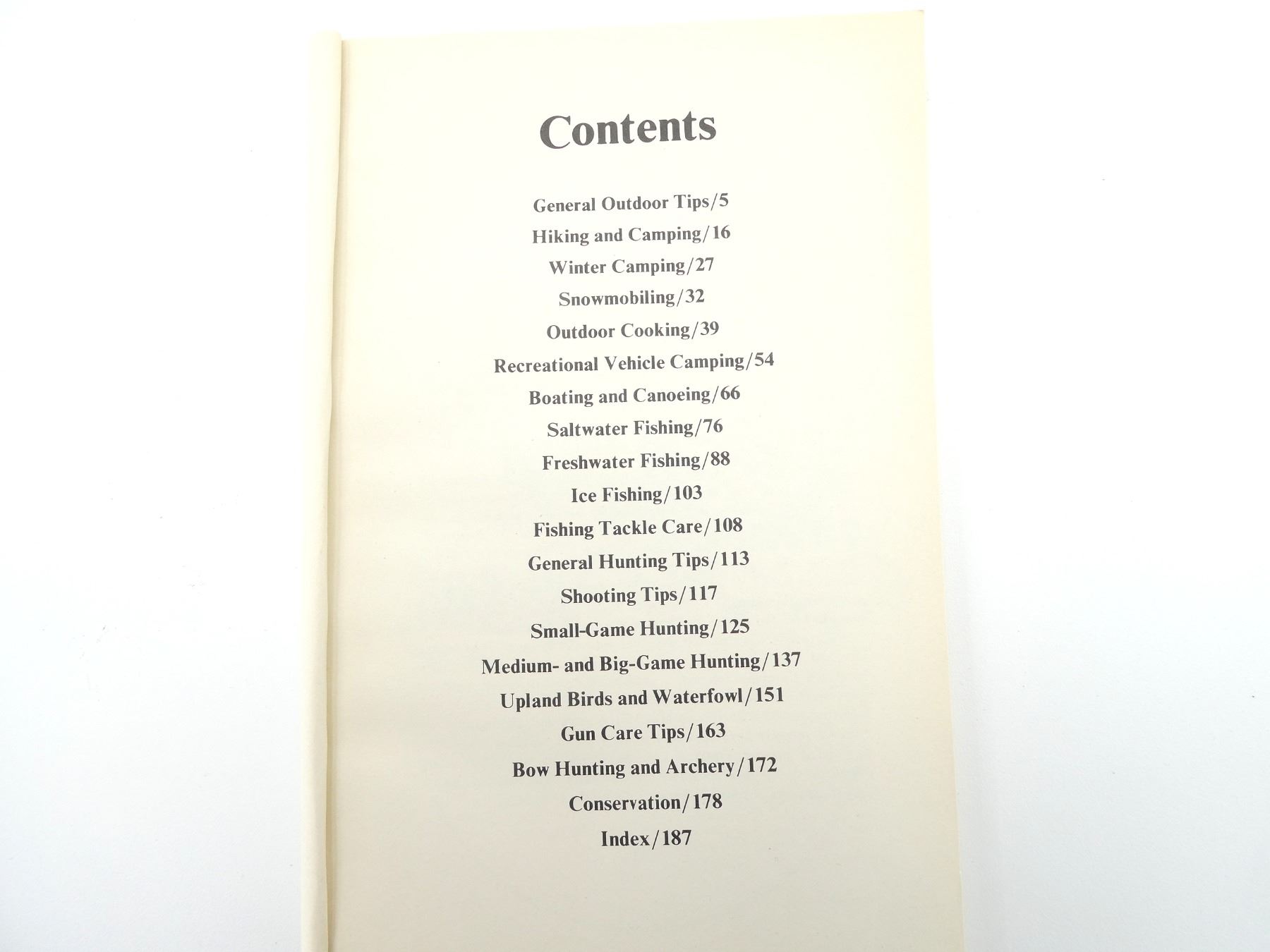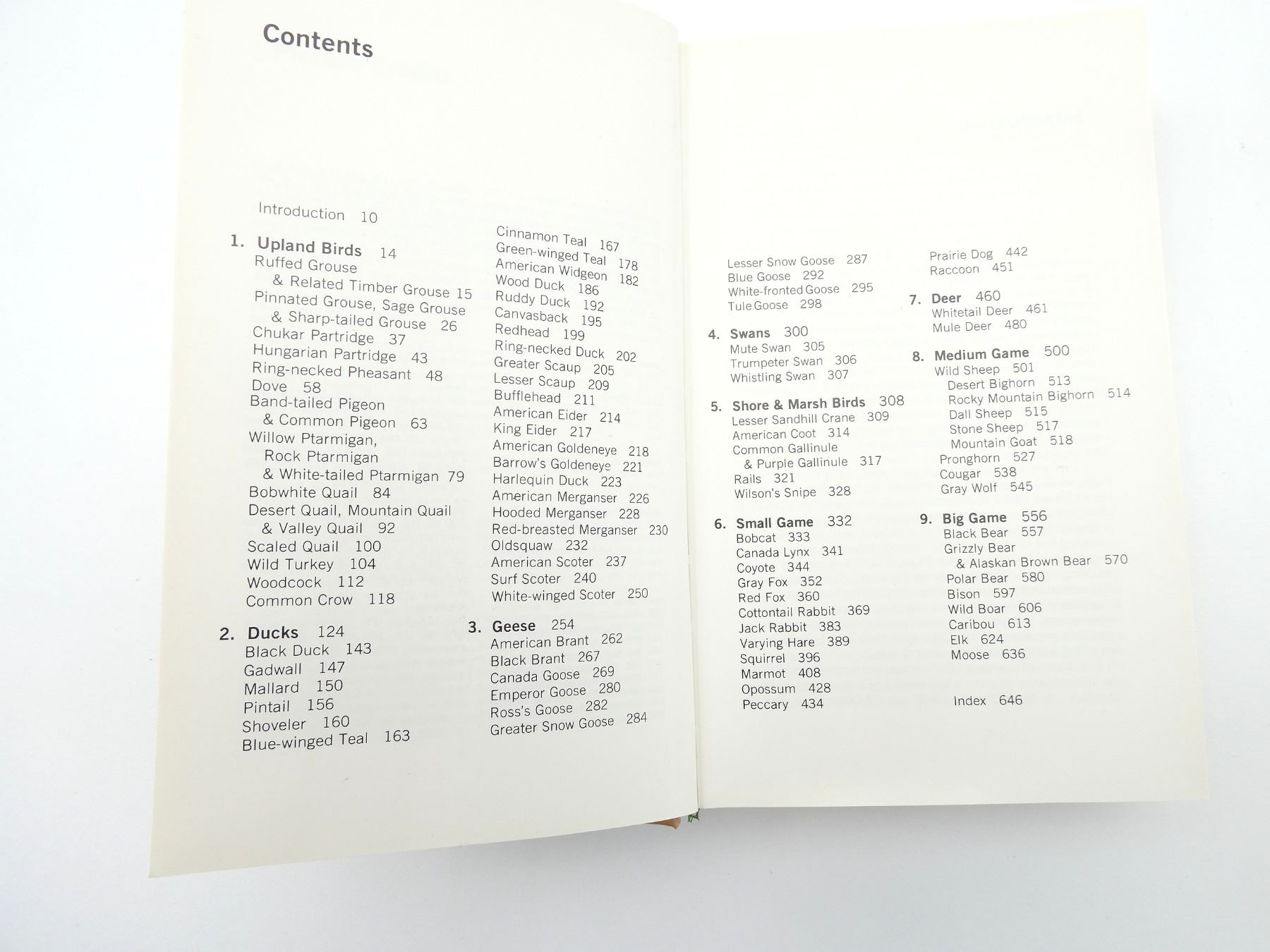 LOT INCLUDES; (1) "THE HUNTER'S FIELD GUIDE TO THE GAME BIRDS AND ANIMALS OF NORTH AMERICA" BOOK BY ROBERT ELMAN, HARD COVER WITH DUST COVER, COPYRIGHT 1982, (1) "THE HUNTER'S HANDBOOK" BY JEROME J. KNAP, SOFT COVER, ISBN: 0-88932-010-1 & (1) "OUTDOOR TIPS" BOOK, BY THE REMINGTON SPORTSMEN'S LIBRARY, SOFT COVER, ISBN: 0-87502-905-1. SEE PHOTOS.
