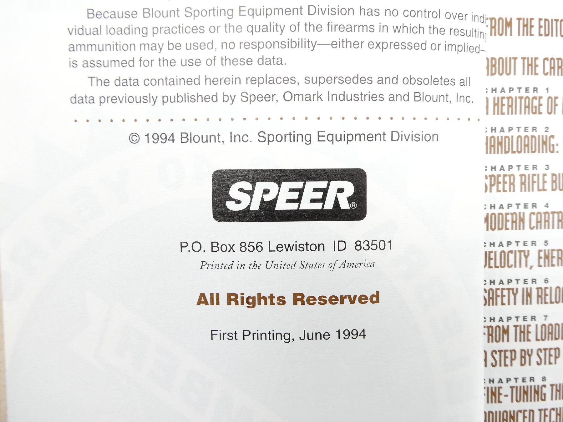 LOT INCLUDES; (1) "HODGDON DATA MANUAL NO. 25" BOOK BY HODGDON POWDER CO. INC., HARD COVER, COPYRIGHT 1986 & (1) "SPEER RELOADING RIFLE & PISTOL MANUAL" BOOK BY BLOUNT INC. SPORTING EQUIPMENT DIVISION, HARD COVER, COPYRIGHT 1994. SEE PHOTOS.