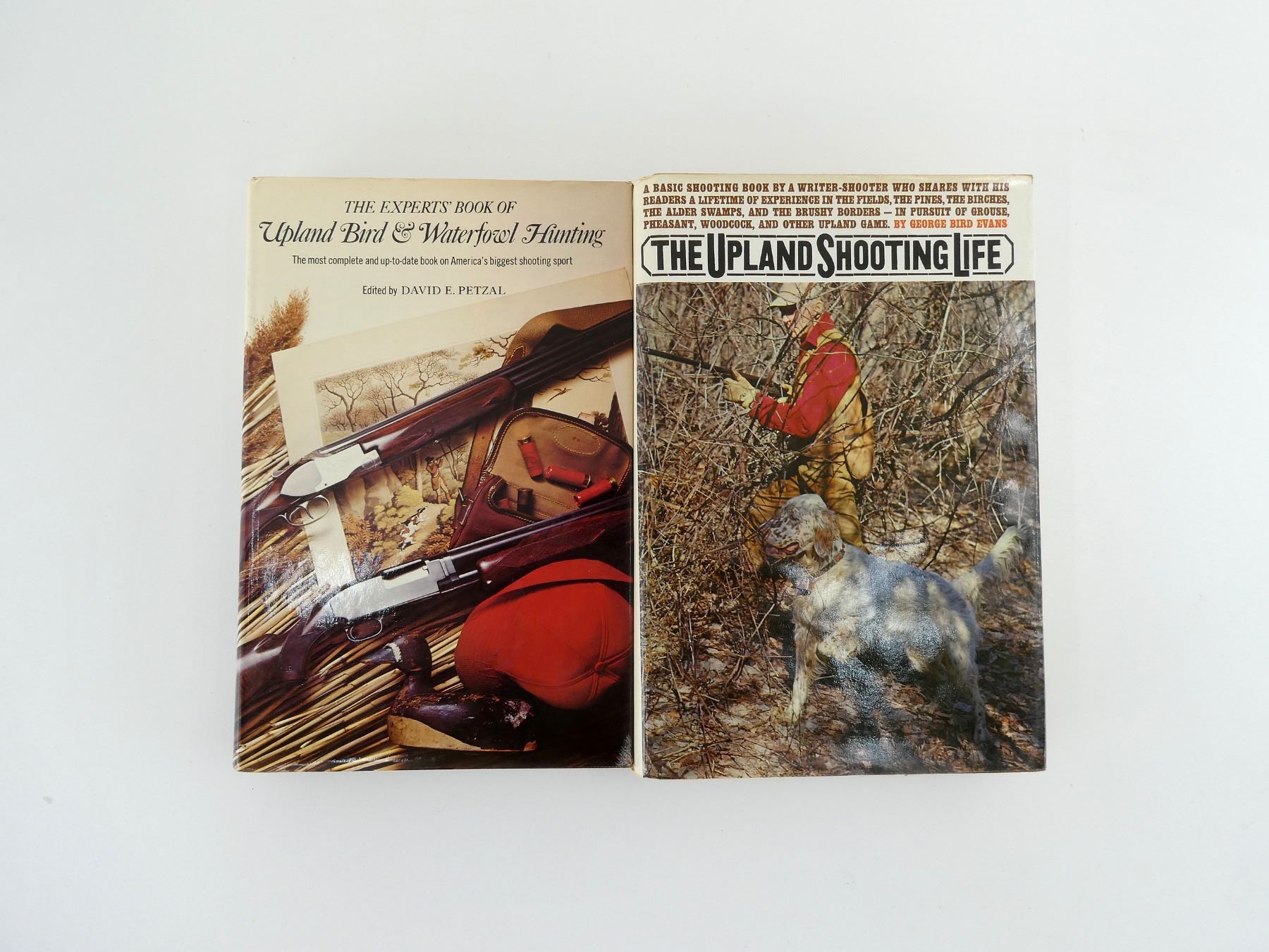 LOT INCLUDES; (1) "THE UPLAND SHOOTING LIFE" BOOK BY GEORGE BIRD EVANS, HARD COVER WITH DUST COVER, ISBN: 0-394-47295-0 & (1) "THE EXPERTS' BOOK OF UPLAND BIRD & WATERFOWL HUNTING" EDITED BY DAVID E. PETZAL, HARD COVER WITH DUST COVER, ISBN: 0-671-21884-0. SEE PHOTOS.