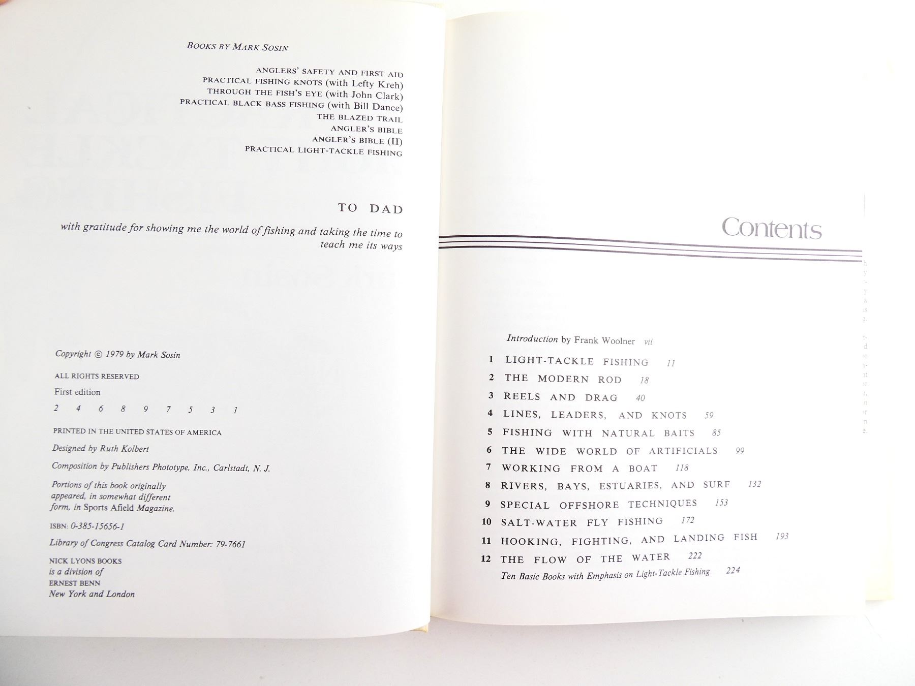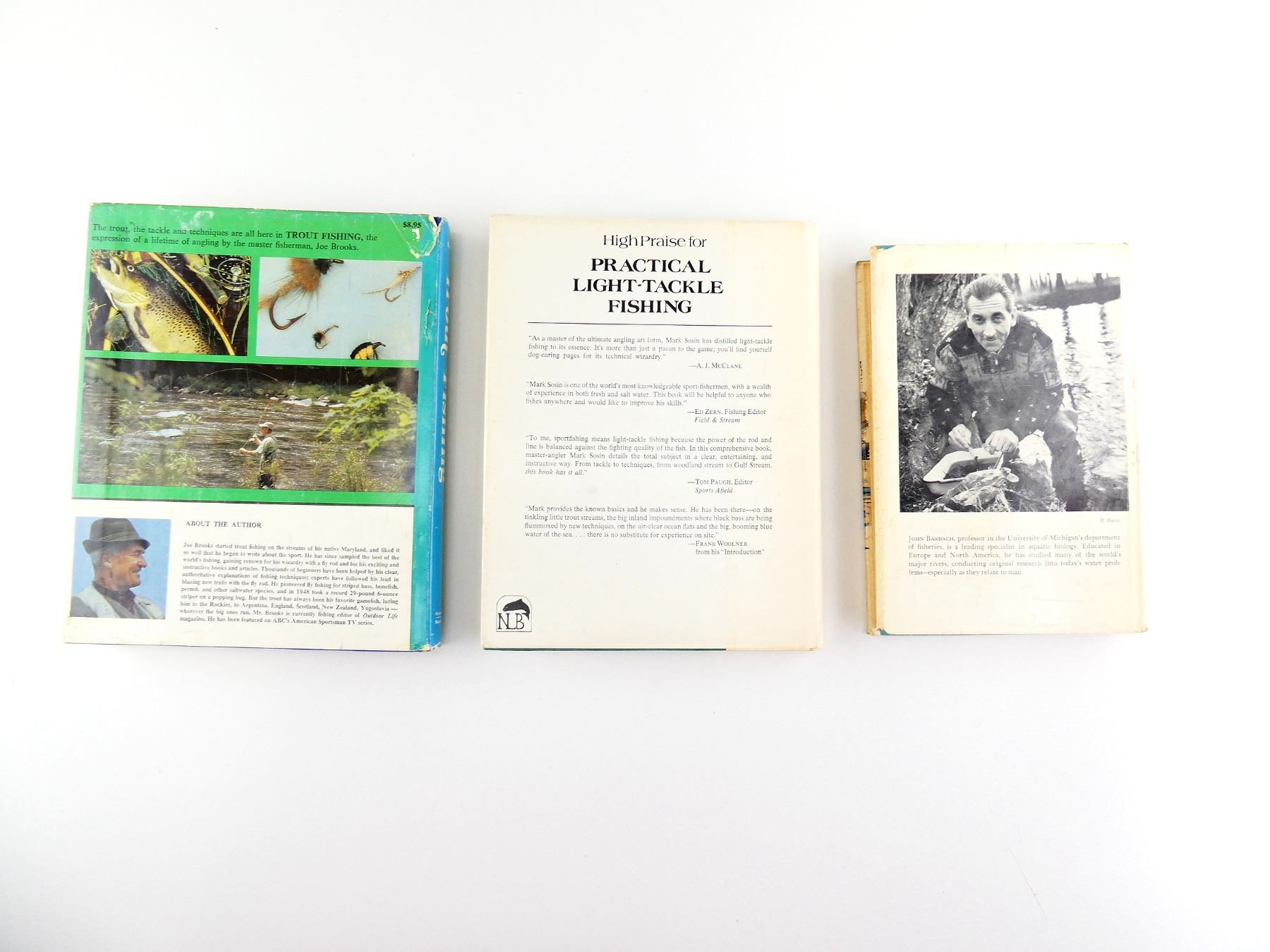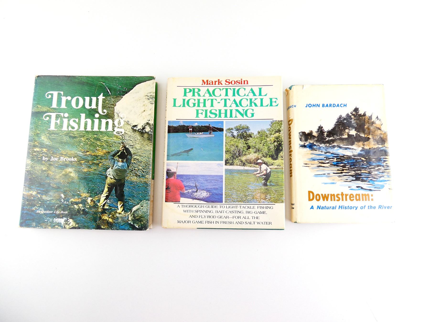 LOT INCLUDES; (1) "TROUT FISHING" BOOK BY JOE BROOKS, HARD COVER WITH DUST COVER, ISBN: 06-010532-3, (1) "PRACTICAL LIGHT-TACKLE FISHING" BOOK BY MARK SOSIN, HARD COVER WITH DUST COVER, ISBN: 0-385-15656-1 & (1) "DOWNSTREAM: A NATURAL HISTORY OF THE RIVER" BOOK BY JOHN BARDACH, HARD COVER WITH DUST COVER, COPYRIGHT 1964. SEE PHOTOS.