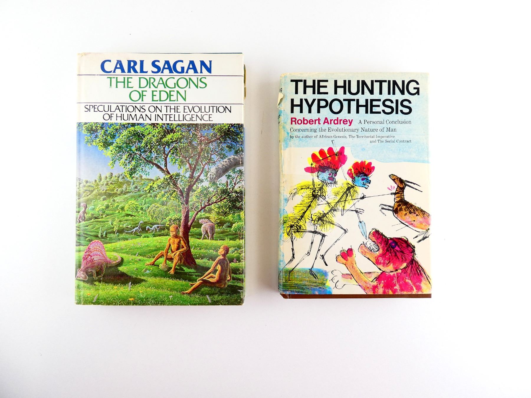 LOT INCLUDES; (1) "THE HUNTING HYPOTHESIS" BOOK BY ROBERT ARDREY, HARD COVER WITH DUST COVER, COPYRIGHT 1976 & (1) "THE DRAGONS OF EDEN" BOOK BY CARL SAGAN, HARD COVER WITH DUST COVER, ISBN: 0-394-41045-9. SEE PHOTOS.