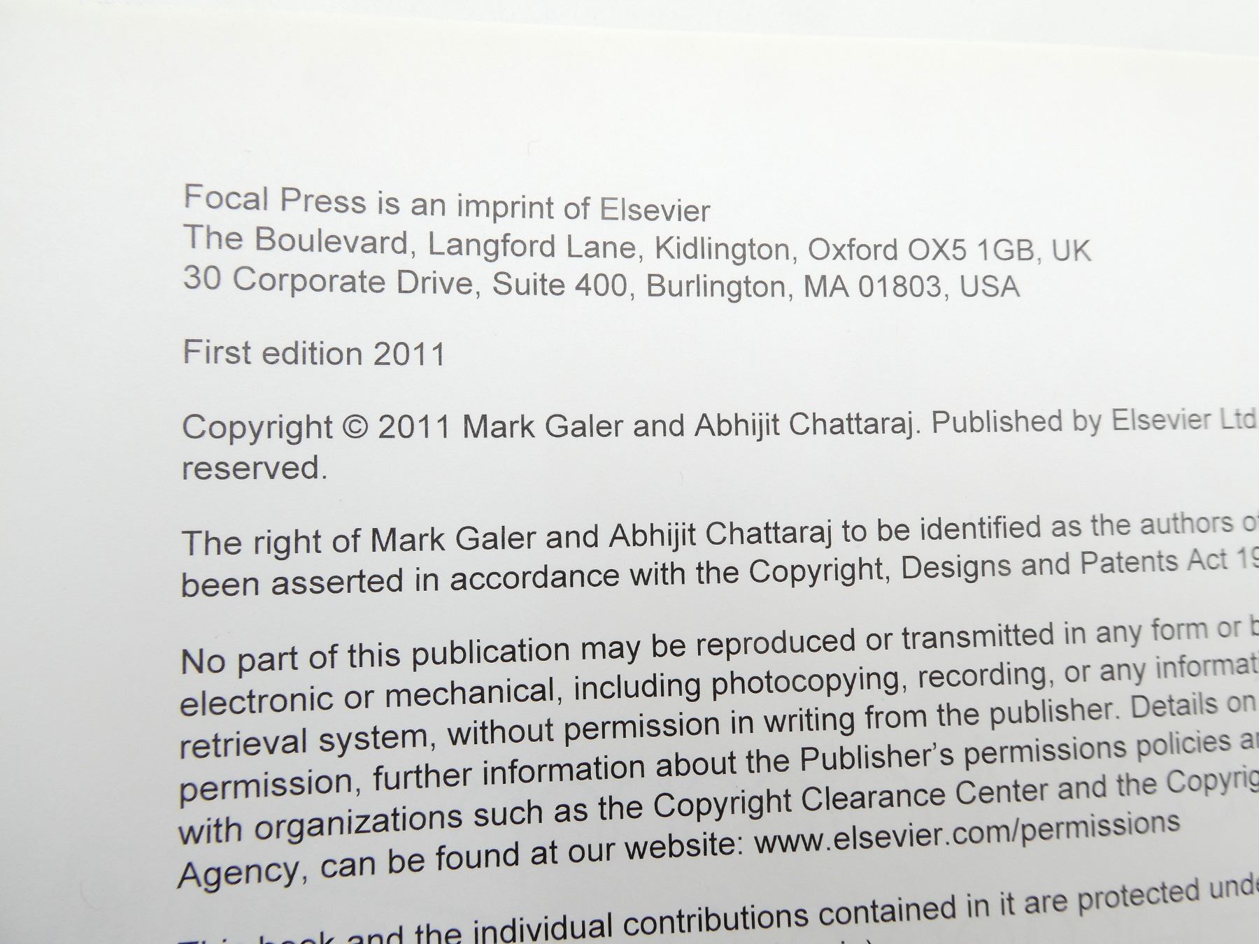(1) BY MARK GALER & ABHIJIT CHATTARAJ, SOFT COVER, ISBN: 978-0-240-52242-5. SEE PHOTOS.