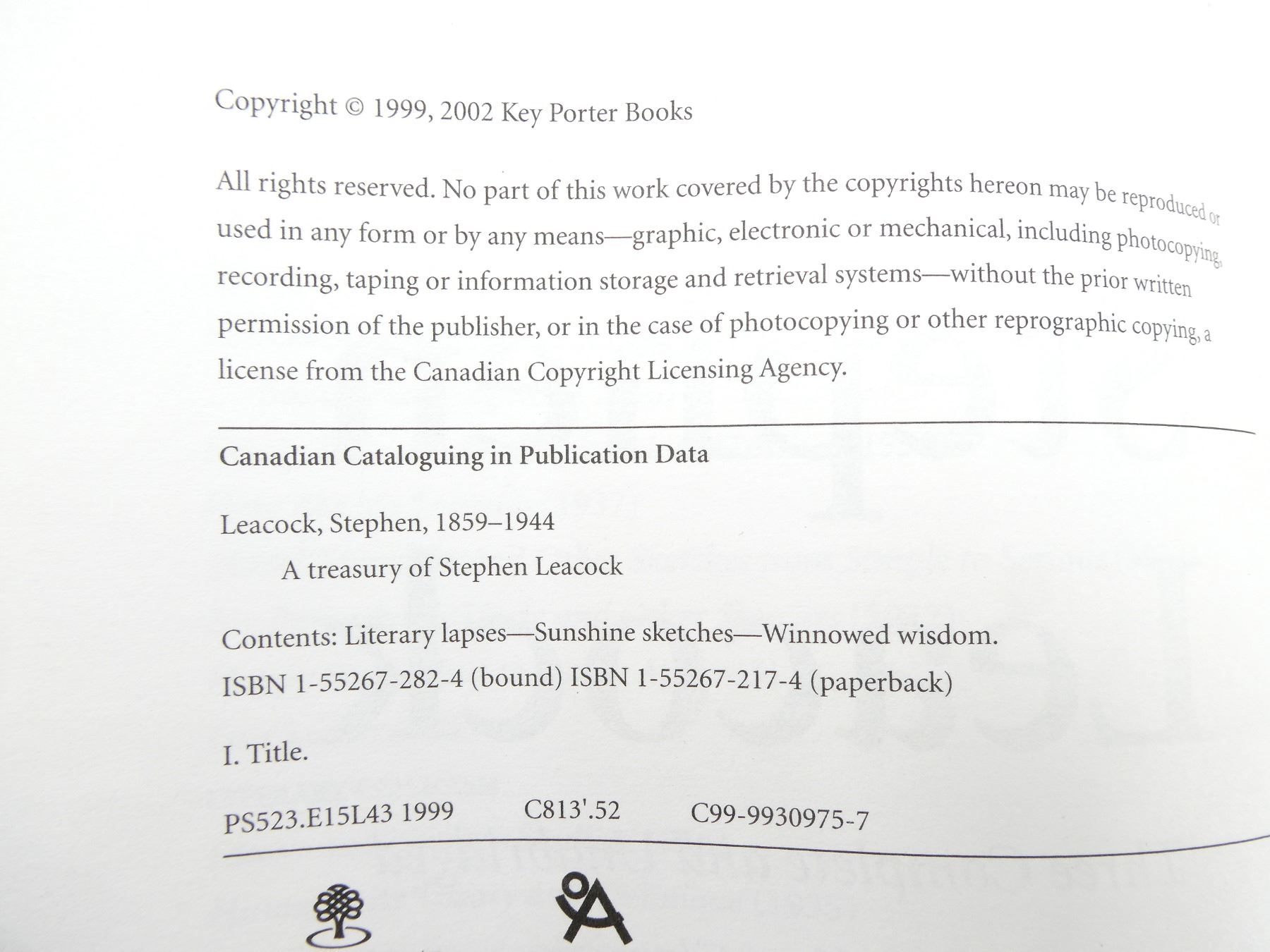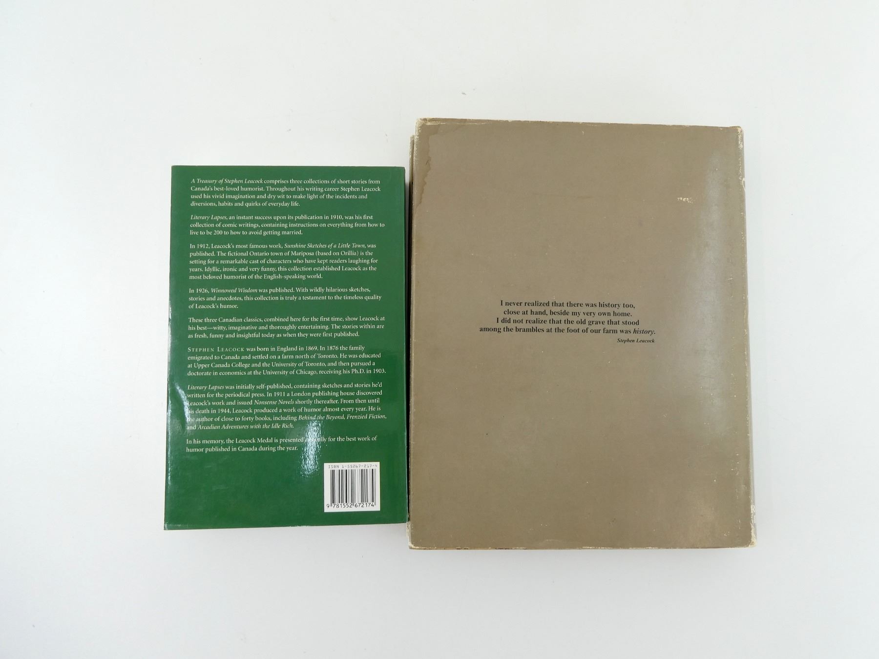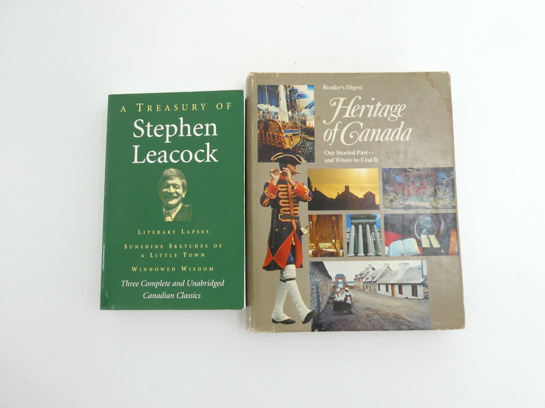 LOT INCLUDES; (1) "A TREASURY OF STEPHEN LEACOCK" BOOK, BY STEPHEN LEACOCK, SOFT COVER, ISBN: 1-55267-217-4 & (1) "HERITAGE OF CANADA" BOOK, BY THE READER'S DIGEST ASSOCIATION (CANADA) LTD., HARD COVER WITH DUST COVER, ISBN: 0-88850-065-3. SEE PHOTOS.