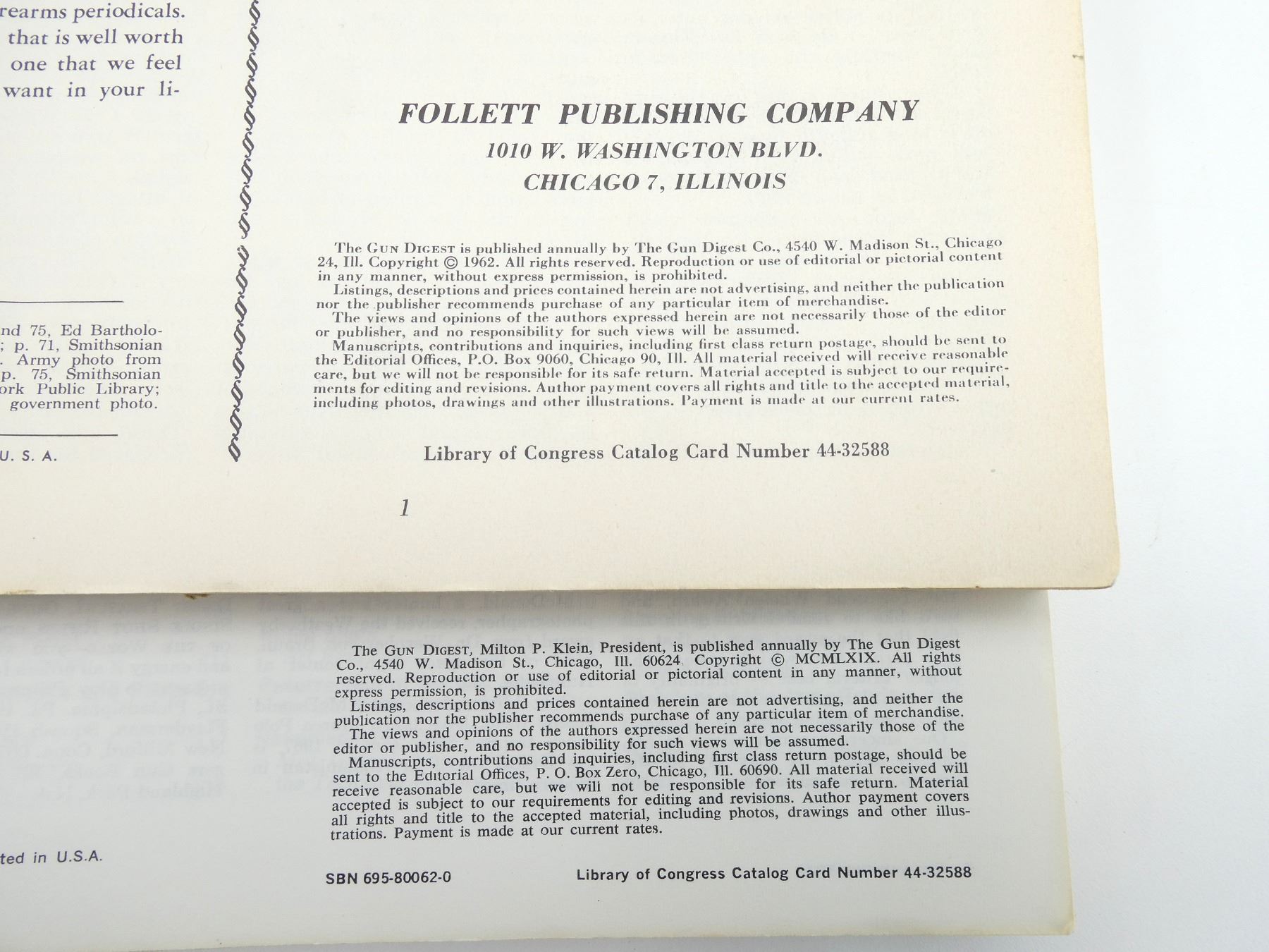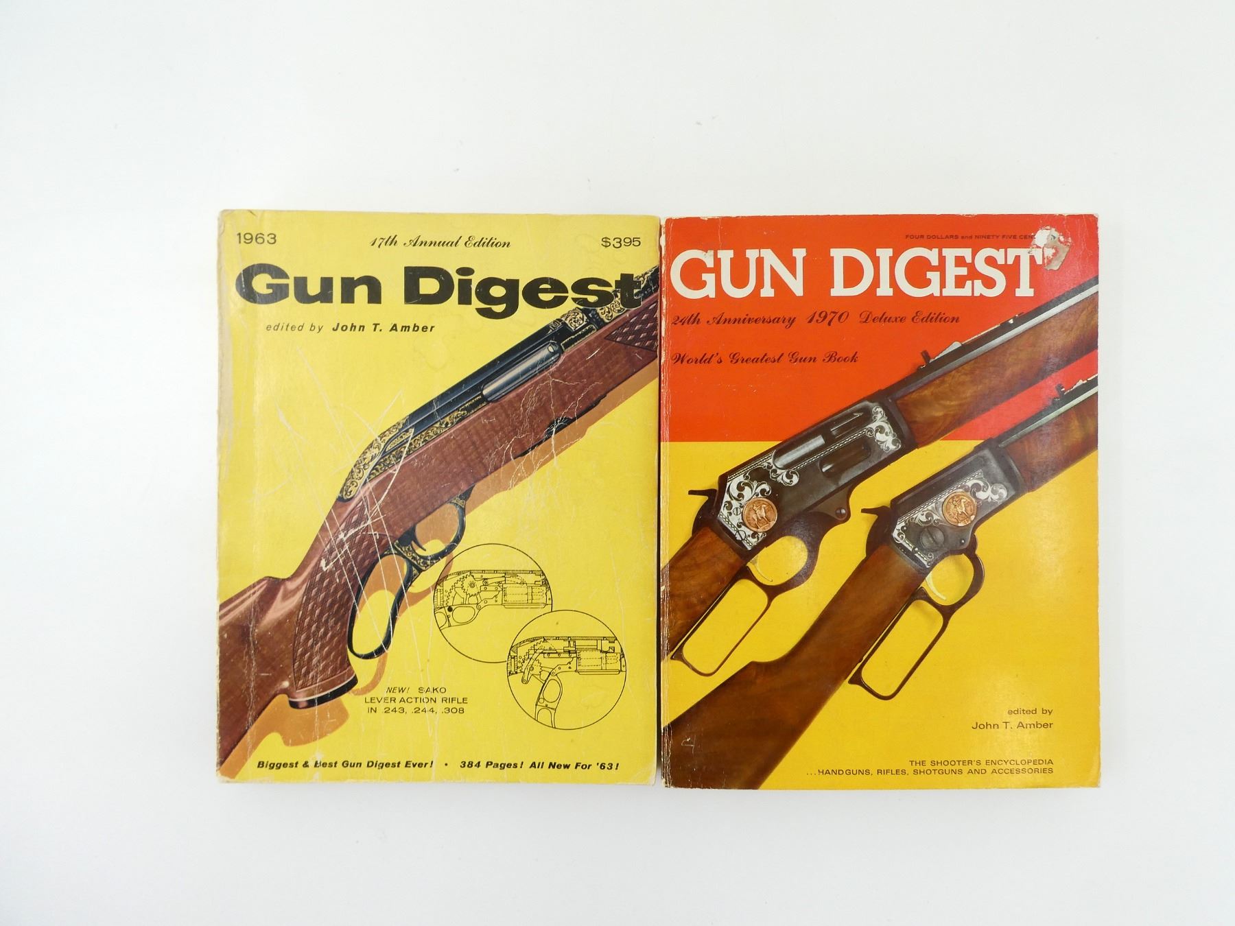 LOT INCLUDES; (1) "GUN DIGEST 17TH ANNIVERSARY 1963 ANNUAL EDITION", EDITED BY JOHN T. AMBER, SOFT COVER, COPYRIGHT 1962 & (1) "GUN DIGEST 24TH ANNIVERSARY 1970 DELUXE EDITION", EDITED BY JOHN T. AMBER, SOFT COVER, ISBN: 695-80062-0. SEE PHOTOS.