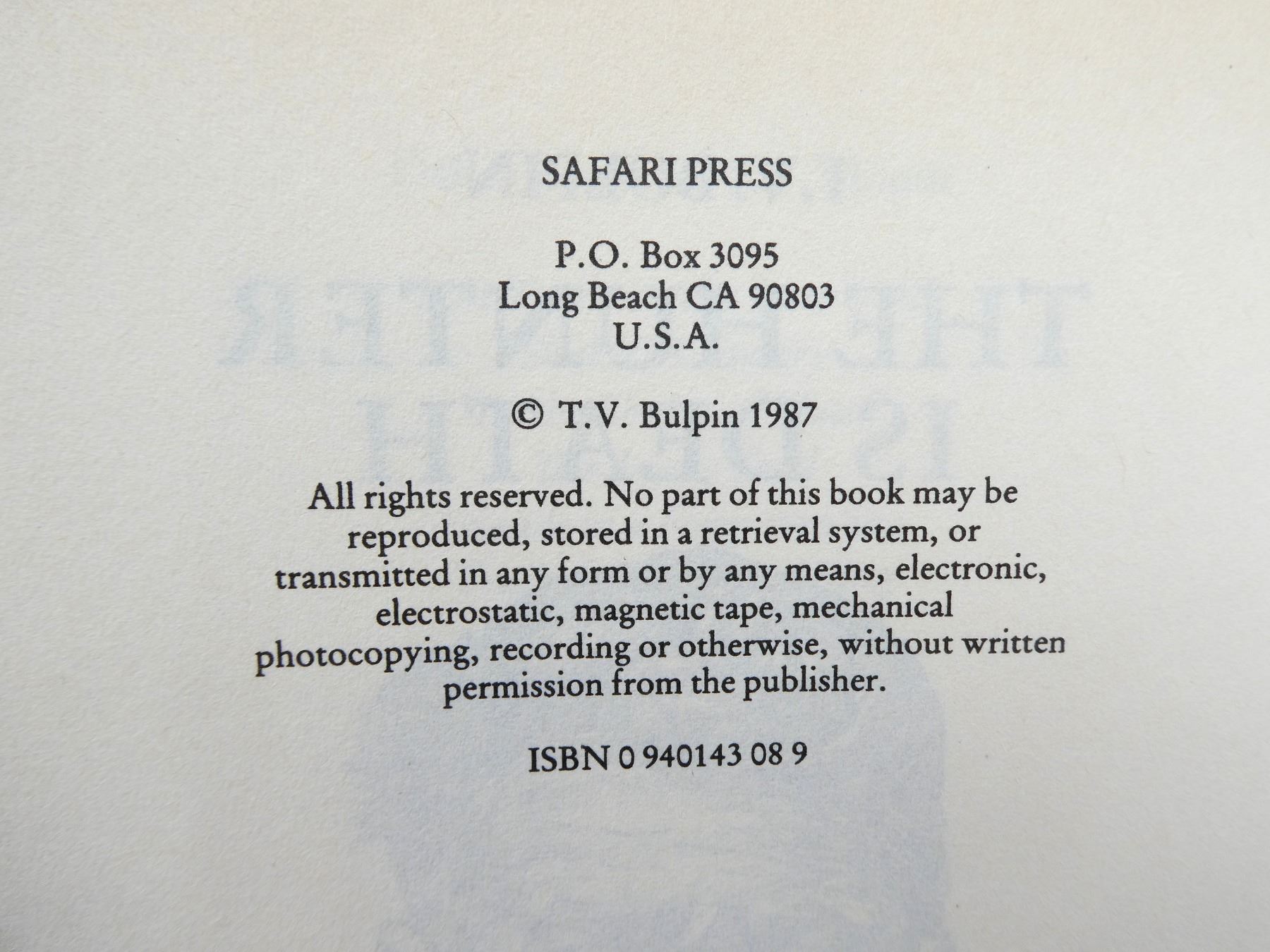(1) BY T.V. BULPIN, HARD COVER WITH DUST COVER, ISBN: 0-940143-08-9. SEE PHOTOS.
