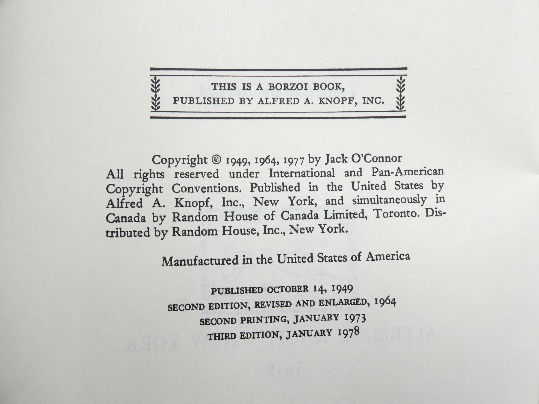 (1) BY JACK O'CONNOR, HARD COVER, THIRD EDITION, COPYRIGHT 1978. SEE PHOTOS.
