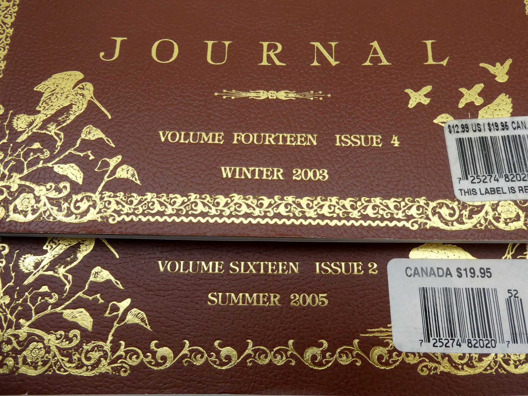 LOT INCLUDES; (1) "VOLUME TWELVE, ISSUE 2, SUMMER 2001", SOFT COVER, (1) "VOLUME FOURTEEN, ISSUE 3, AUTUMN 2003", SOFT COVER, (1) "VOLUME FOURTEEN, ISSUE 4, WINTER 2003", SOFT COVER, (1) "VOLUME SIXTEEN, ISSUE 1, SPRING 2005", SOFT COVER, (1) VOLUME SIXTEEN, ISSUE 2, SUMMER 2005", SOFT COVER, (1) "VOLUME SIXTEEN, ISSUE 3, AUTUMN 2005", SOFT COVER. SEE PHOTOS.