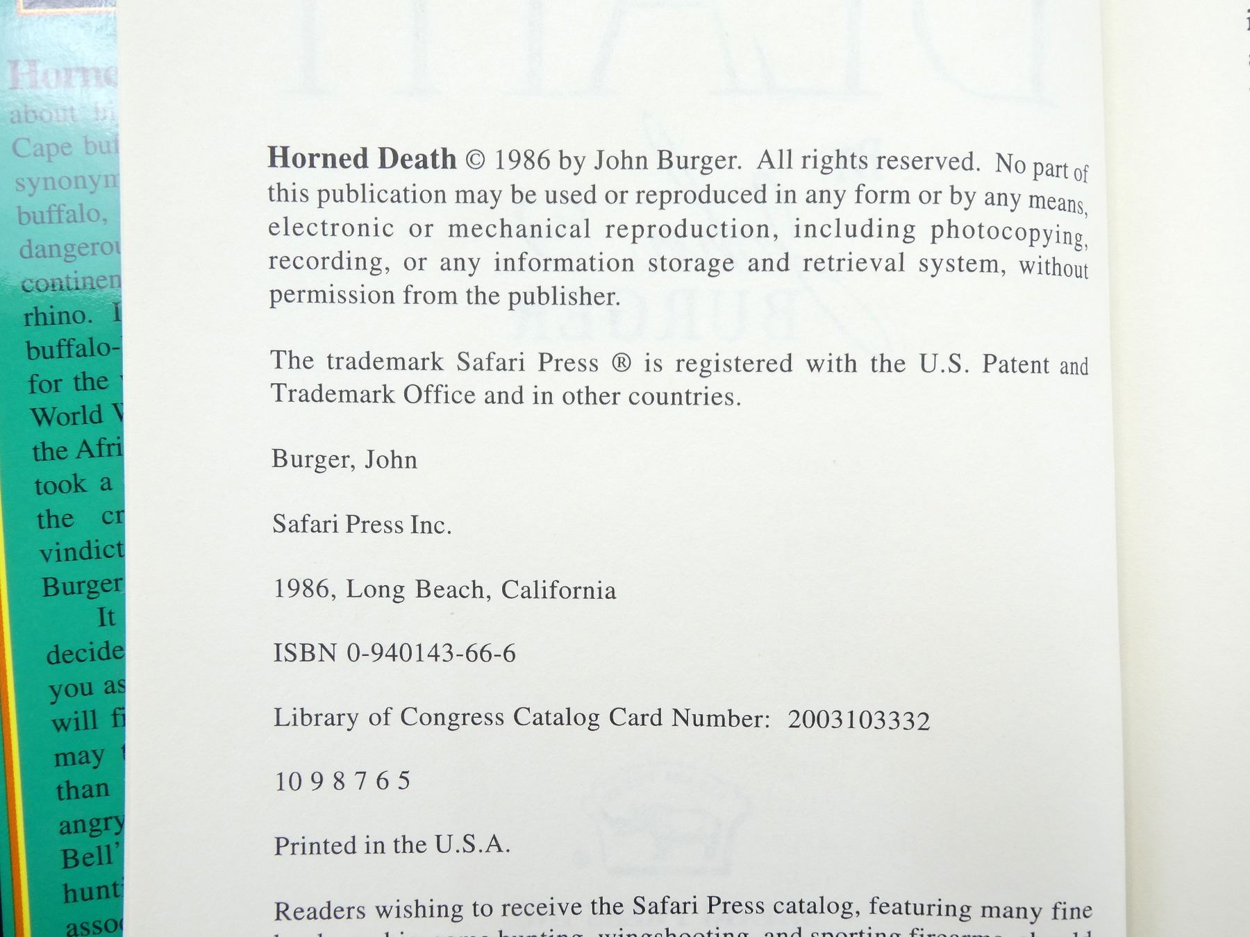 Lot 42129 "HORNED DEATH, HUNTING THE AFRICAN BUFFALO" BOOK