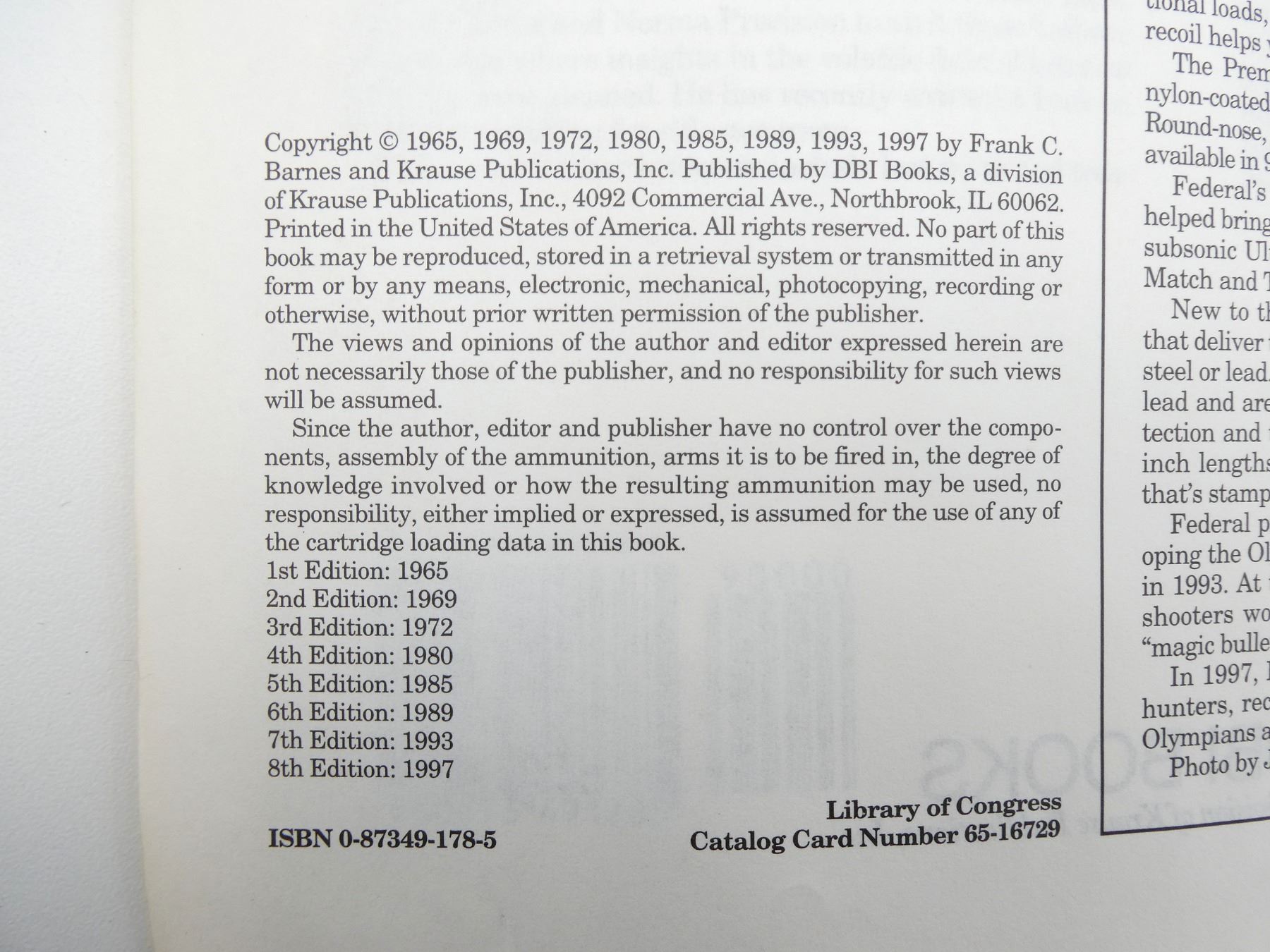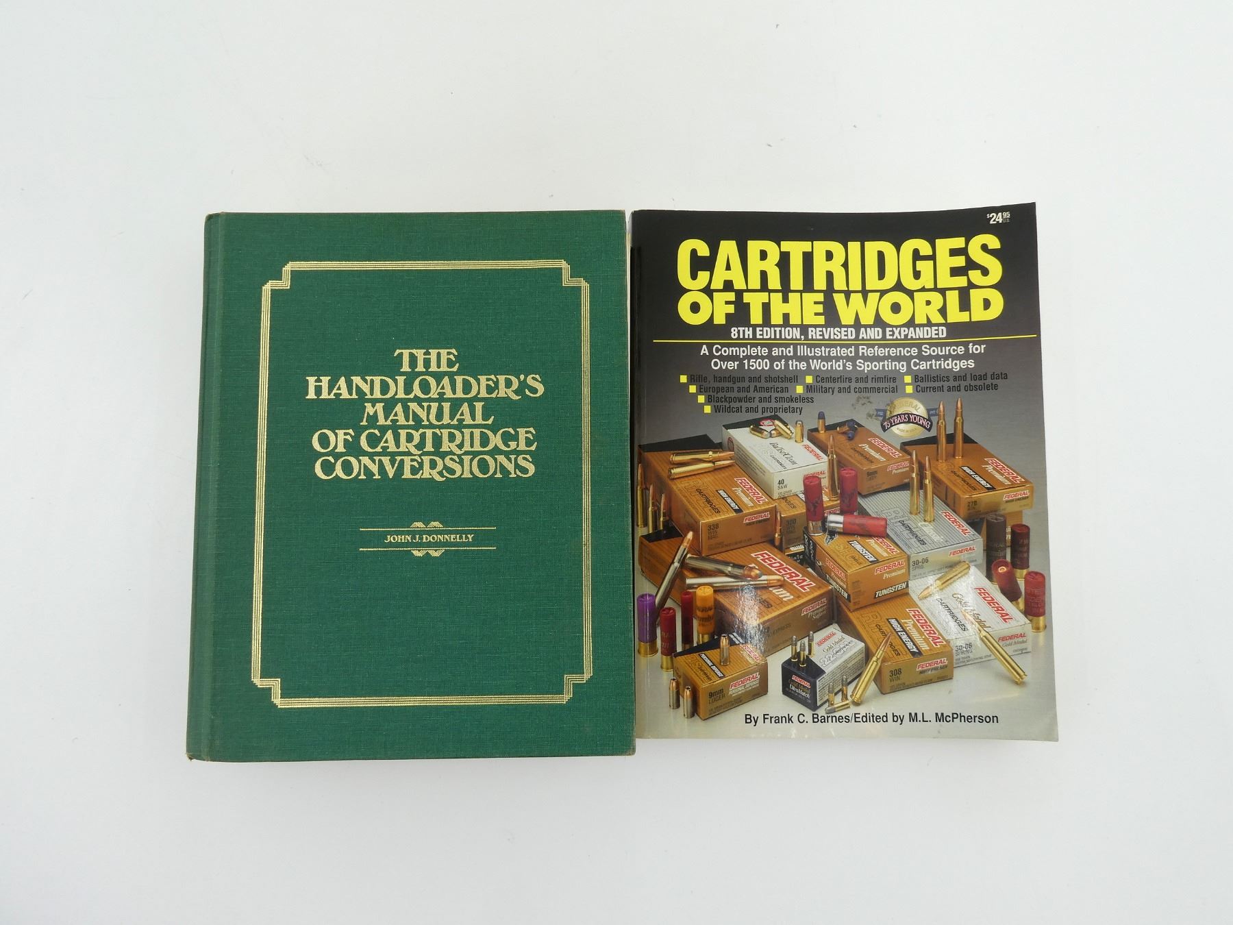 LOT INCLUDES; (1) "CARTRIDGES OF THE WORLD, 8TH EDITION" BOOK, BY FRANK C. BARNES, SOFT COVER, ISBN: 0-87349-178-5 & (1) "THE HANDLOADER'S MANUAL OF CARTRIDGE CONVERSIONS" BOOK BY JOHN J. DONNELLY, HARD COVER, ISBN: 0-88317-138-4. SEE PHOTOS.