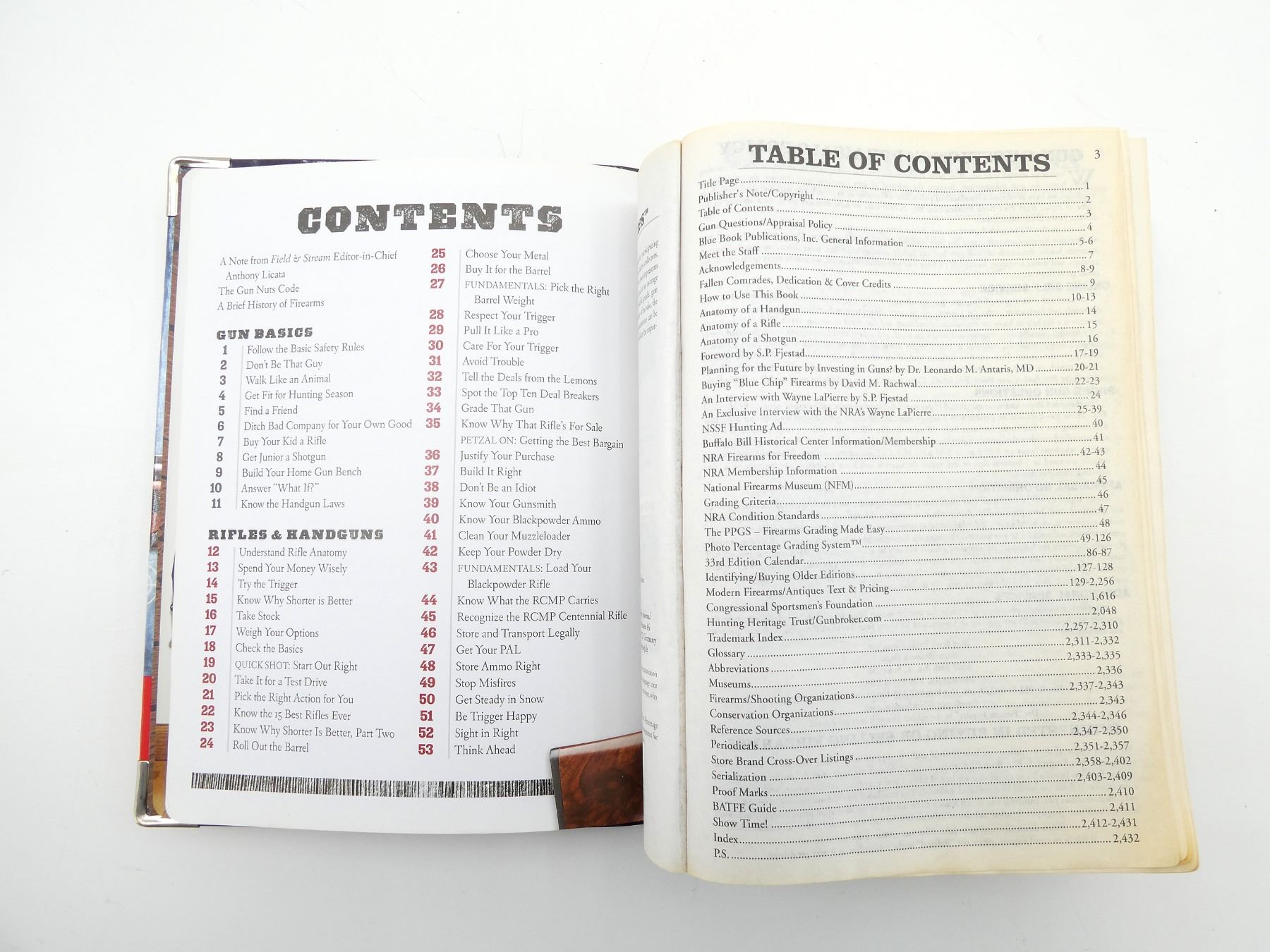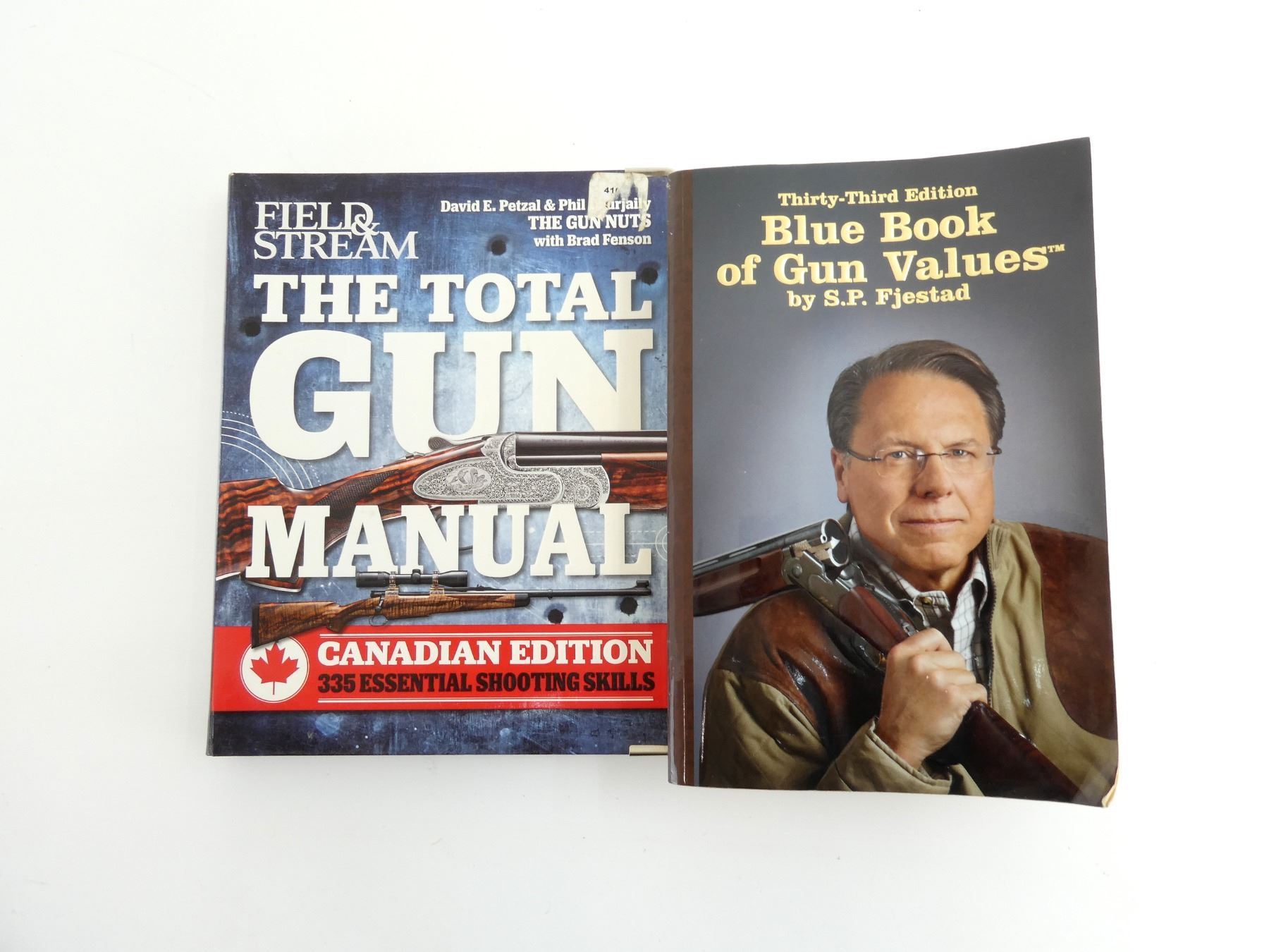 LOT INCLUDES; (1) "THE TOTAL GUN MANUAL", BY FIELD & STREAM, SOFT COVER, ISBN: 978-1-61628-848-8 & (1) "BLUE BOOK OF GUN VALUES", 33RD EDITION, BY S.P. FJESTAD, SOFT COVER, ISBN: 978-1-936120-20-8. SEE PHOTOS.