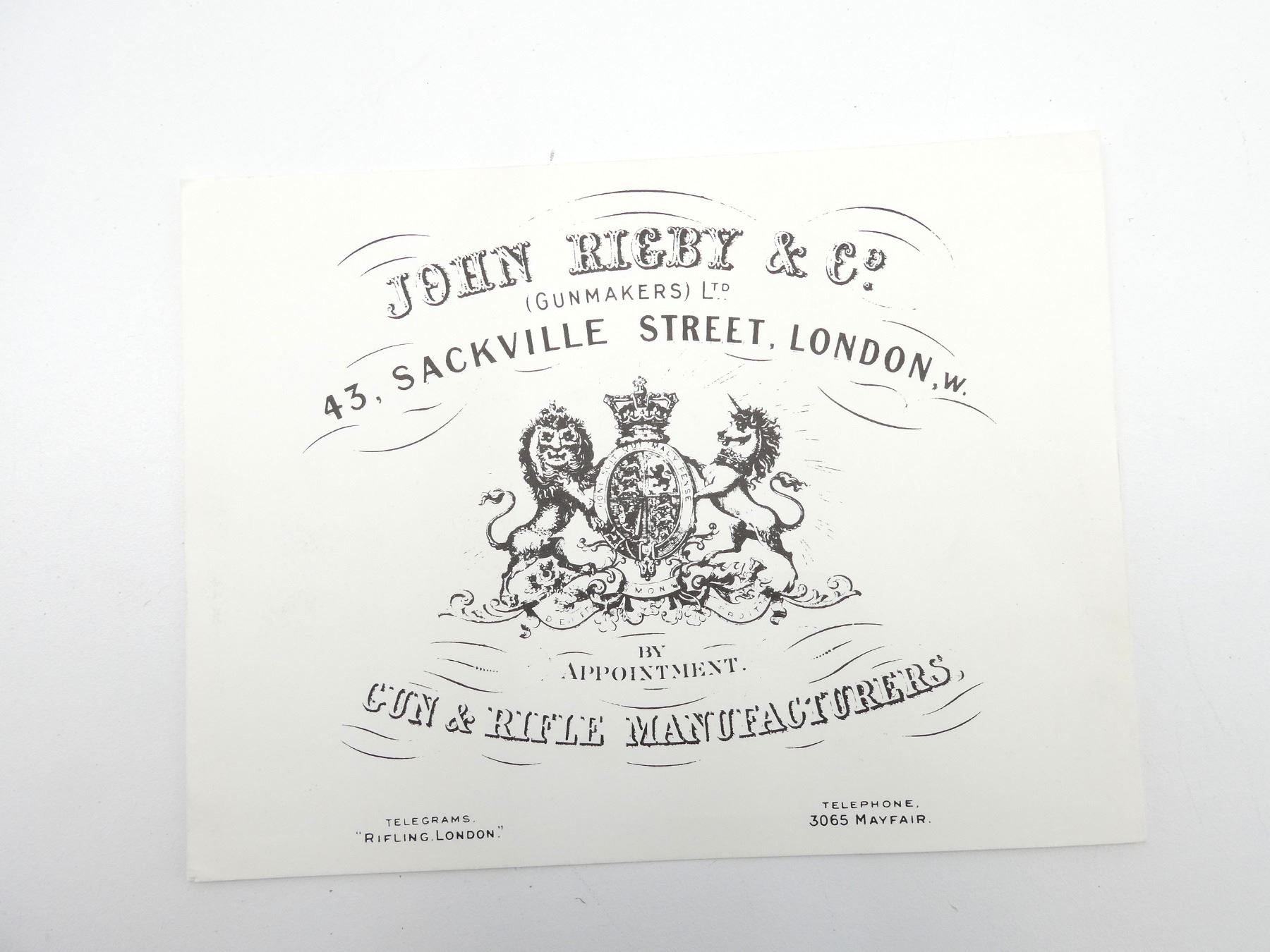Lot 42194 "JOHN RIGBY & CO. (GUNMAKERS) LTD." TRADE LABEL