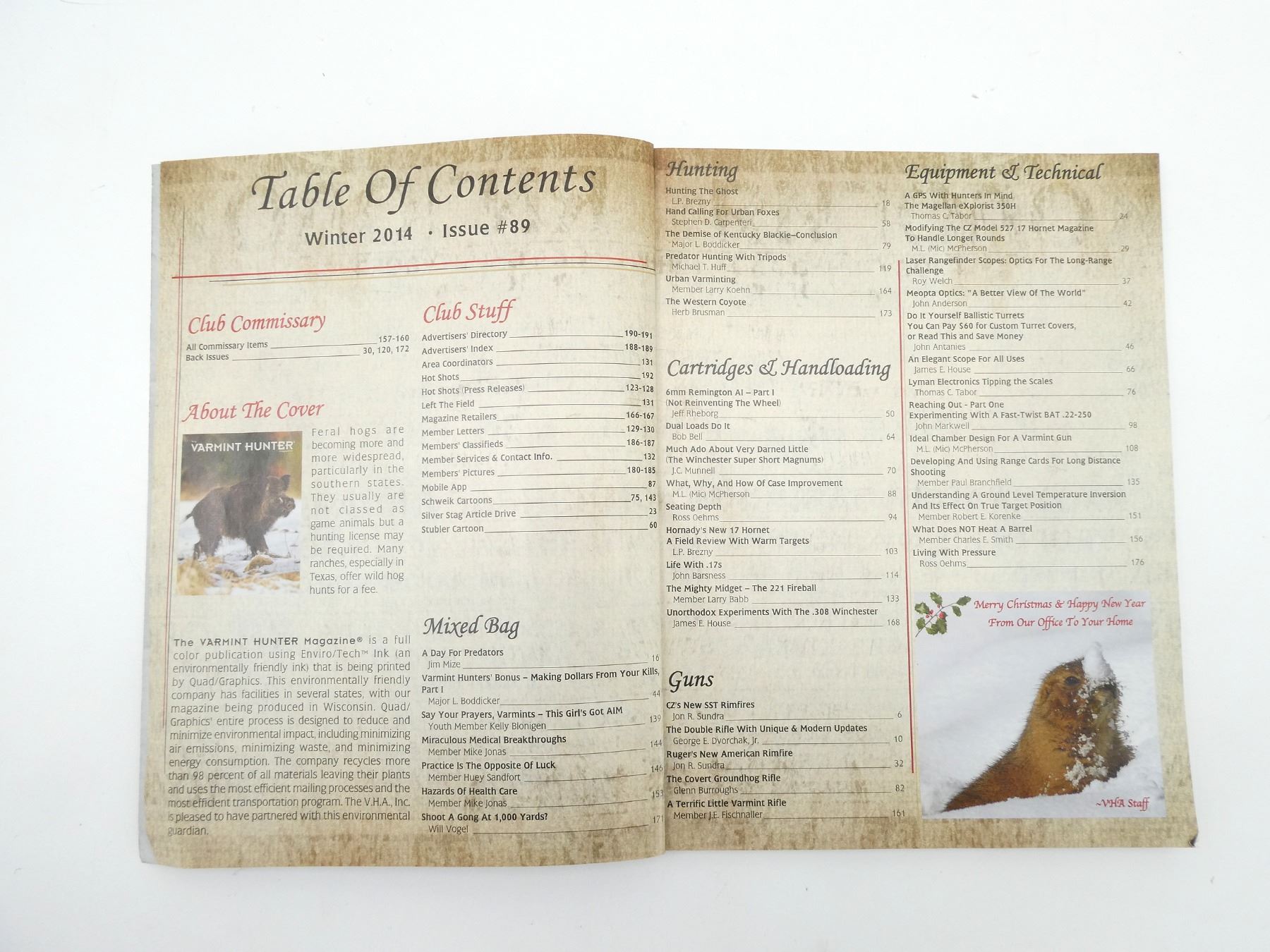 LOT INCLUDES; (5) "THE VARMINT HUNTER" MAGAZINE, ISSUES 89-94, SOFT COVER, SERIES NOT COMPLETE / SOME ISSUES MISSING / MAY CONTAIN DUPLICATES. SEE PHOTOS.